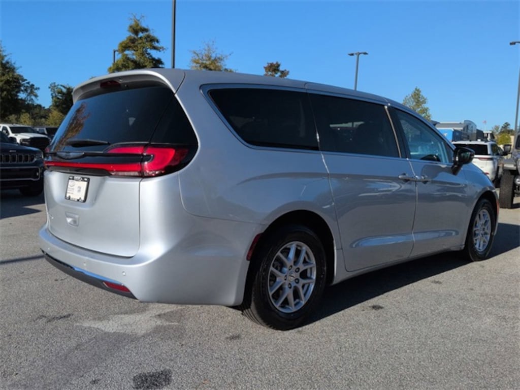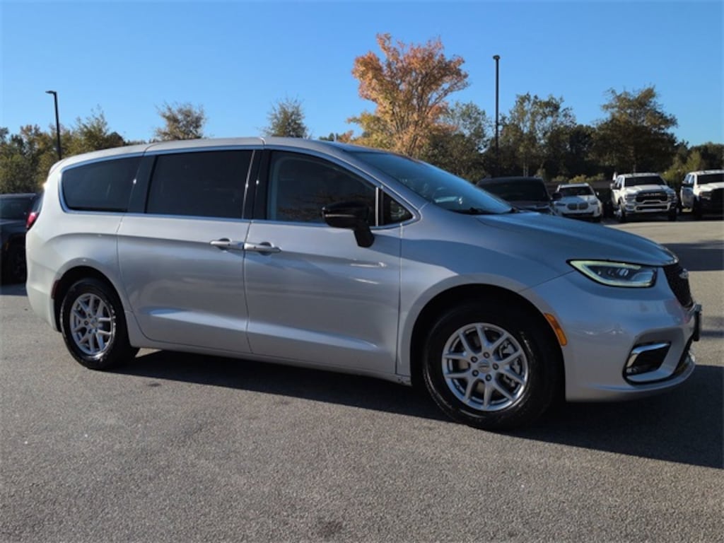 This 2024 Chrysler Pacifica Touring L in Silver Mist Clearcoat features: 4D Passenger Van, 3.6L V6 24V VVT, 9-Speed 948TE Automatic, FWD, 10.1" Portriat Touchscreen, 10.1" Touchscreen Display, 3rd Row Seating, 3rd row seats: split-bench, 4-Wheel Disc Brakes, 6 Speakers, ABS brakes, AM/FM radio: SiriusXM, Android Auto, Apple Carplay, Apple CarPlay/Android Auto, Auto Emergency Braking, Auto LED Headlights, Automatic temperature control, Backup Camera, Blind Spot Monitoring, Bluetooth w/ Audio Streaming, Brake assist, Cold Weather Package, Compass, Delay-off headlights, Electronic Stability Control, Four wheel independent suspension, Front dual zone A/C, Front fog lights, Front Pedestrian Braking, Fully automatic headlights, Google Android Auto, GPS Antenna Input, Heated door mirrors, Heated front seats, Heated steering wheel, Illuminated entry, Integrated Active Noise Cancellation, Integrated Center Stack Radio, Lane Departure Warning, LED Foglights, LED Projector Headlights, Low tire pressure warning, Memory Package, Memory seat, Multi Zone Climate Control, Outside temperature display, Overhead console, Panic alarm, Parking Sensors, ParkView Rear Back-Up Camera, Power door mirrors, Power driver seat, Power Liftgate, Power Mirror Package, Power Package, Power Sliding Doors, Power steering, Power windows, Preferred Equipment Package, Push Button Start, Quick Order Package 27L, Radio data system, Radio: Uconnect 5 w/10.1" Display, Rain sensing wipers, Rear air conditioning, Rear Climate Package, Rear Cross Traffic Alert, Rear window wiper, Reclining 3rd row seat, Remote keyless entry, Remote Start, Reverse Brake Assist, Reverse Sensing, Safety Package, Security system, Speed control, Spoiler, Steering wheel mounted audio controls, Telescoping steering wheel, Tilt steering wheel, Tour Package, Touring Suspension, Traction control, Trip computer, Turn signal indicator mirrors, USB Host Flip.