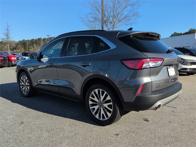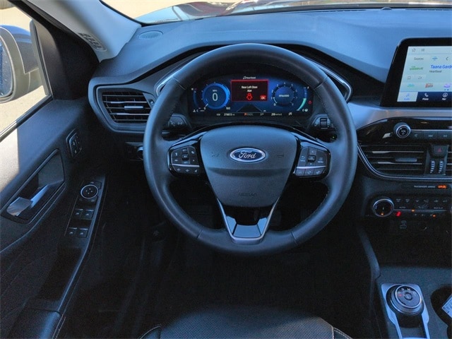 This 2022 Ford Escape Titanium in Carbonized Gray Metallic features: 4D Sport Utility, EcoBoost 2.0L I4 GTDi DOHC Turbocharged VCT, 8-Speed Automatic, AWD, 4-Wheel Disc Brakes, 8" Color Touchscreen, ABS brakes, Active Cruise Control, Adaptive Cruise Control, AM/FM radio: SiriusXM, Auto High-beam Headlights, Auto LED Headlights, Auto-dimming Rear-View mirror, Automatic temperature control, Backup Camera, Blind Spot Monitoring, BLIS w/ Cross Traffic Alert, Bluetooth w/ Audio Streaming, Brake assist, Cold Weather Package, Compass, Delay-off headlights, Electronic Stability Control, Emergency communication system: SYNC 3 911 Assist, Equipment Group 401A, Exterior Parking Camera Rear, Four wheel independent suspension, Front Center Armrest, Front dual zone A/C, Front fog lights, Fully automatic headlights, Garage door transmitter, Hands-Free Foot-Activated Liftgate Feature Removal, Heated ActiveX Trimmed Front Sport Contour Bucket Seats, Heated door mirrors, Heated front seats, Heated steering wheel, Illuminated entry, LED Foglights, Low tire pressure warning, Memory Package, Memory seat, Multimedia Package, Navigation System, Outside temperature display, Overhead console, Panic alarm, Parking Sensors, Power door mirrors, Power driver seat, Power Liftgate, Power Mirror Package, Power Package, Power passenger seat, Power steering, Power windows, Push Button Start, Radio data system, Rain sensing wipers, Rear seat center armrest, Rear window wiper, Remote keyless entry, Remote Start, Reverse Brake Assist, Reverse Sensing, Roof rack: rails only, Security system, Speed-sensing steering, Speed-Sensitive Wipers, Split folding rear seat, Spoiler, Steering wheel mounted audio controls, SYNC 3 Communications & Entertainment System, Telescoping steering wheel, Tilt steering wheel, Traction control, Trip computer, Voice-Activated Touchscreen Navigation System, Wheels: 19" Machined-Face Aluminum.