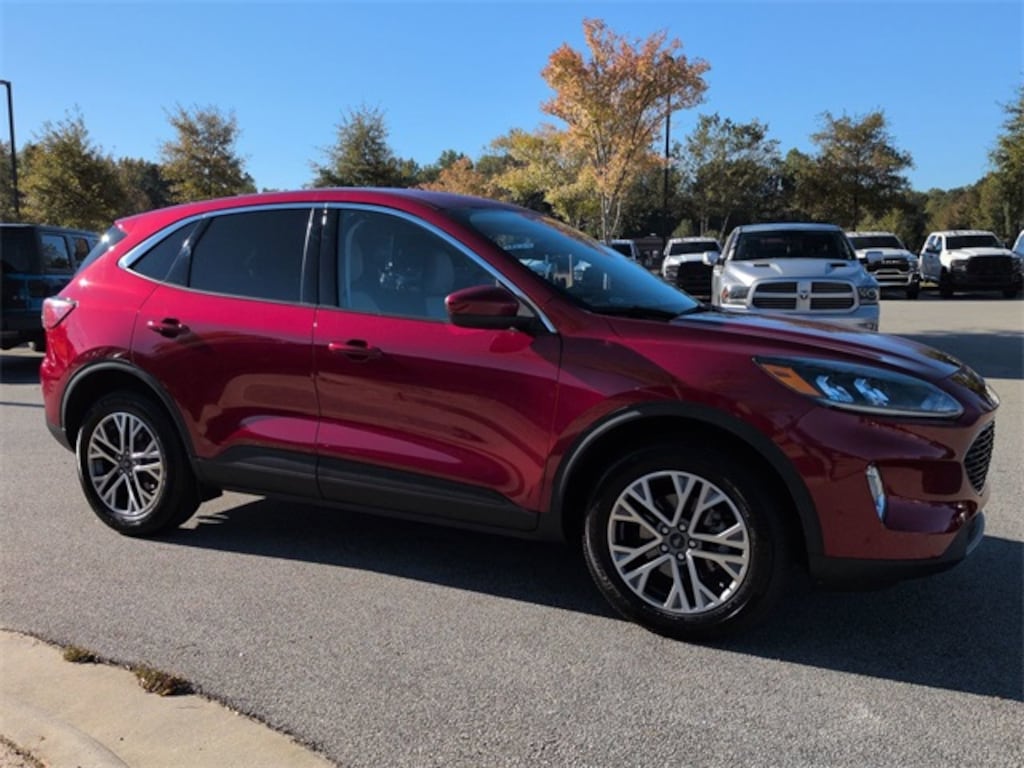 This 2022 Ford Escape SEL in Red Metallic features: 4D Sport Utility, 1.5L EcoBoost, 8-Speed Automatic, AWD, 10-Way Power Driver's Seat, 3.81 Axle Ratio, 4-Wheel Disc Brakes, 8" Color Touchscreen, ABS brakes, AM/FM radio: SiriusXM, AM/FM Stereo, Auto High-beam Headlights, Automatic temperature control, Backup Camera, Blind Spot Monitoring, BLIS w/ Cross Traffic Alert, Bluetooth w/ Audio Streaming, Brake assist, Cold Weather Package, Compass, Delay-off headlights, Electronic Stability Control, Emergency communication system: SYNC 3 911 Assist, Equipment Group 301A, Exterior Parking Camera Rear, FordPass Connect, Four wheel independent suspension, Front Bucket Seats, Front Center Armrest, Front dual zone A/C, Front fog lights, Front reading lights, Fully automatic headlights, Hands-Free Foot-Activated Liftgate, Heated ActiveX Trimmed Front Sport Contour Bucket Seats, Heated door mirrors, Heated front seats, Heated steering wheel, Illuminated entry, Instrument Panel w/6.5" Digital Screen, Low tire pressure warning, Memory Package, Memory Package, Panic alarm, Parking Sensors, Power door mirrors, Power driver seat, Power Liftgate, Power Mirror Package, Power Package, Power steering, Power windows, Premium Audio Package, Premium Sound Package, Push Button Start, Radio data system, Radio: B&O Sound System by Bang & Olufsen, Rear seat center armrest, Rear window wiper, Remote keyless entry, Remote Start, Reverse Brake Assist, Reverse Sensing, Speed control, Speed-sensing steering, Speed-Sensitive Wipers, Split folding rear seat, Spoiler, Steering wheel mounted audio controls, SYNC 3 Communications & Entertainment System, Technology Package, Telescoping steering wheel, Tilt steering wheel, Traction control, Trip computer, Wireless Charging Pad, Wireless Charging Pad.