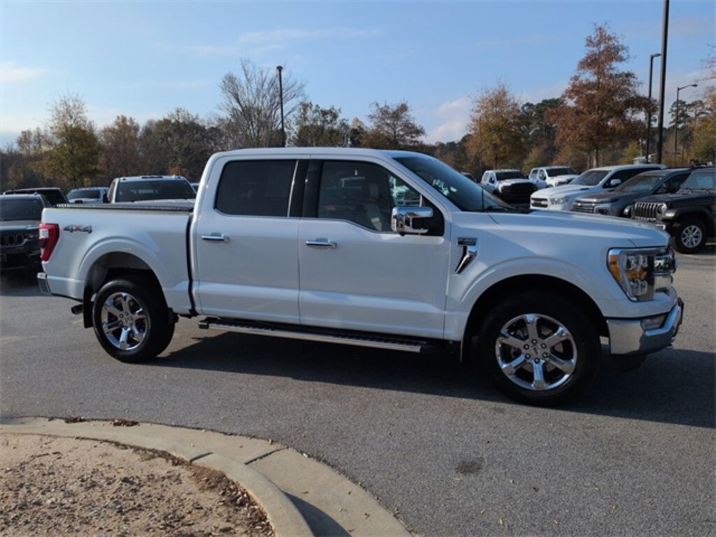 This 2022 Ford F-150 Lariat in Star White Metallic Tri-Coat features: 4D SuperCrew, 3.5L V6 EcoBoost, 10-Speed Automatic, 4WD, 12" LCD Productivity Touchscreen, 360 Degree Camera, 360-Degree Camera, 4-Wheel Disc Brakes, 4G WiFi Hotspot Telematics, 6" Bright Polished Running Board, ABS brakes, Adjustable pedals, Auto Emergency Braking, Auto High-beam Headlights, Auto Start-Stop Removal, Auto-dimming door mirrors, Auto-dimming Rear-View mirror, Automatic temperature control, Backup Camera, Blind Spot Monitoring, BLIS w/ Cross Traffic Alert, Bluetooth w/ Audio Streaming, Brake assist, Chrome 2-Bar Grille w/4 Minor Bars, Chrome Door & Tailgate Handles w/Body-Color Bezel, Chrome Single-Tip Exhaust, Chrome Skull Caps on Exterior Mirrors, Class IV Trailer Hitch Receiver, Compass, Connected Navigation & SiriusXM w/360L Removal, Delay-off headlights, Electronic Locking w/3.55 Axle Ratio, Electronic Stability Control, Emergency communication system: SYNC 4 911 Assist, Equipment Group 501A Mid, Extended Range 36 Gallon Fuel Tank, Exterior Parking Camera Rear, Front Center Armrest w/Storage, Front dual zone A/C, Front fog lights, Front reading lights, Front wheel independent suspension, Fully automatic headlights, Heated door mirrors, Heated front seats, Illuminated entry, Integrated Trailer Brake Controller, Lane Keeping System, Lariat Chrome Appearance Package, Lariat Package, Leather Seats, Leather-Trimmed 40/20/40 Front Seat, LED Sideview Mirror Spotlights, Low tire pressure warning, Max Trailer Tow Package, Memory seat, Onboard 400W Outlet, Outside temperature display, Overhead console, Panic alarm, Panoramic Sunroof/Moonroof, Parking Sensors, Pedal memory, Post Collision Braking, Power door mirrors, Power Mirror Package, Power Package, Power passenger seat, Power Sliding Rear Window, Pre Collision Assist w/ AEB, Premium Audio Package, Premium Sound Package, Pro Trailer Backup Assist, Radio data system, Radio: AM/FM SiriusXM w/360L, Radio: B&O Sound System by Bang & Olufsen, Rear seat center armrest, Rear step bumper, Remote keyless entry, Reverse Brake Assist, Reverse Sensing, Security system, Speed control, Speed-sensing steering, Split folding rear seat, Steering wheel mounted audio controls, SYNC 4 w/Enhanced Voice Recognition, Telescoping steering wheel, Tilt steering wheel, Tow Package, Traction control, Trailer Package, Trip computer, Turn signal indicator mirrors, Twin Panel Moonroof, Universal Garage Door Opener, Variably intermittent wipers, Ventilated front seats, Wheels: 18" Chrome-Like PVD, Wheels: 20" Chrome-Like PVD.