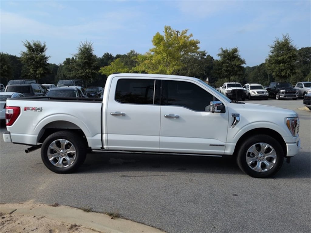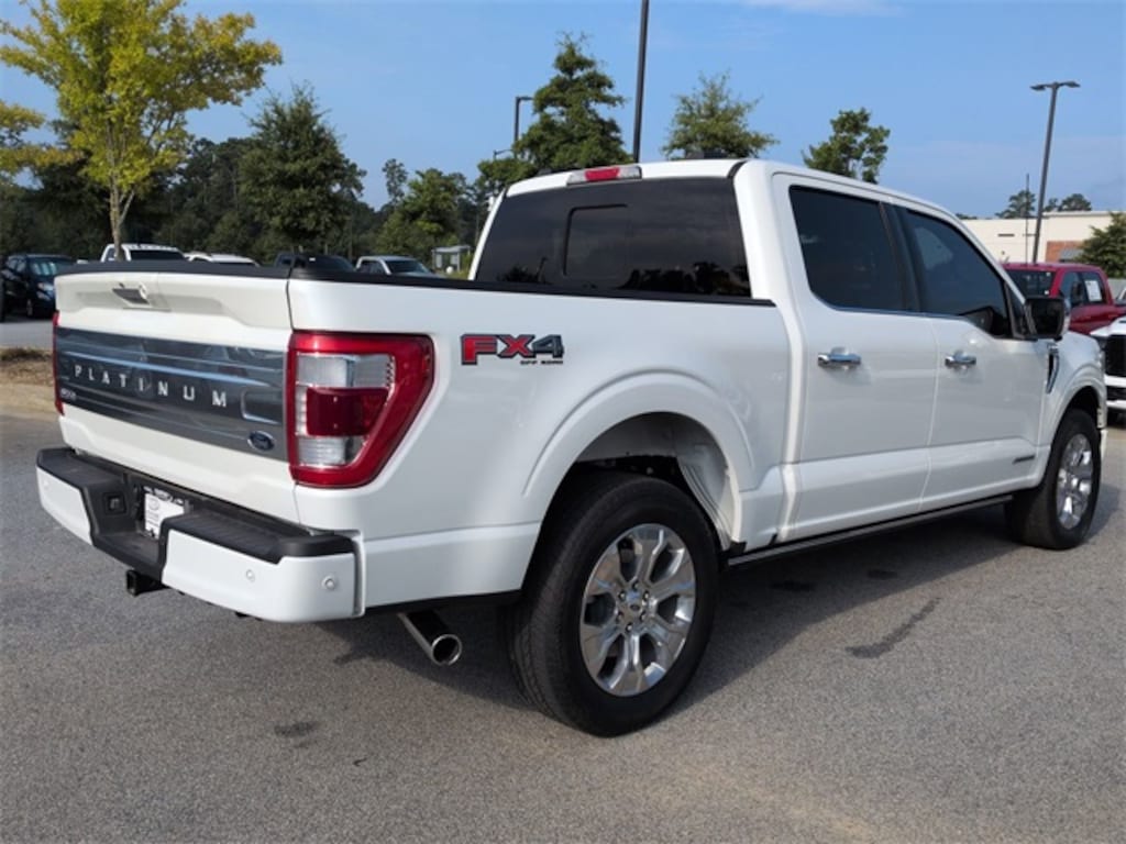This 2023 Ford F-150 Platinum in Star White Metallic Tri-Coat features: 4D SuperCrew, 3.5L PowerBoost Full-Hybrid V6, 10-Speed Automatic, 4WD, 12" LCD Productivity Touchscreen, 20" Polished Aluminum Wheels, 360 Degree Camera, 360-Degree Camera, 4-Wheel Disc Brakes, 4G WiFi Hotspot Telematics, 4x4 FX4 Off-Road Bodyside Decal, ABS brakes, Active Park Assist 2.0, Adaptive Cruise Control, Adjustable pedals, AM/FM radio: SiriusXM with 360L, Auto High-beam Headlights, Auto LED Headlights, Auto Start-Stop Removal (DISC), Auto tilt-away steering wheel, Auto-dimming Rear-View mirror, Automatic temperature control, Backup Camera, Bed Utility Package, BlueCruise, Bluetooth w/ Audio Streaming, BoxLink, Brake assist, Center High-Mounted Stop Lamp CHMSL Camera Removal, Class IV Trailer Hitch Receiver, Compass, Delay-off headlights, Electronic Locking w/3.73 Axle Ratio, Electronic Stability Control, Emergency communication system: SYNC 4 911 Assist, Equipment Group 701A High, Extended Range 36 Gallon Fuel Tank, Exterior Parking Camera Rear, Ford BlueCruise 1.0, Front Center Armrest, Front dual zone A/C, Front fog lights, Front wheel independent suspension, Fully automatic headlights, FX4 Off-Road Package, Garage door transmitter, GVWR: 7,050 lbs Payload Package, Heated door mirrors, Heated front seats, Heated rear seats, Heated steering wheel, Hill Descent Control, Hill Descent Control, Illuminated entry, Inclination/Intrusion Sensor Removal, Integrated Trailer Brake Controller, Interior Work Surface, Lane Keeping System, Leather Seats, LED Box Lighting, Low tire pressure warning, Max Trailer Tow Package, Memory Package, Memory seat, Monotube Rear Shocks, Multicontour Seats w/Active Motion Removal, Off Road Package, Off-Road Tuned Front Shock Absorbers, Outside temperature display, Overhead console, Panic alarm, Panoramic Sunroof/Moonroof, Parking Sensors, Pedal memory, Post Collision Braking, Power door mirrors, Power Mirror Package, Power Package, Power passenger seat, Power Tailgate, Premium Audio Package, Premium Sound Package, Pro Power Onboard - 7.2KW, Pro Trailer Backup Assist & Pro Trailer Hitch Assist, Radio data system, Radio: B&O Unleashed Sound System by Bang & Olufsen, Rain sensing wipers, Rear step bumper, Remote keyless entry, Reverse Brake Assist, Reverse Sensing, Rock Crawl Mode, Security system, Skid Plate Package, Speed control, Speed-sensing steering, Split folding rear seat, Steering Wheel Heat Removal (DISC), Steering wheel memory, Steering wheel mounted audio controls, Tailgate Step w/Tailgate Work Surface, Telescoping steering wheel, Tilt steering wheel, Tow Package, Traction control, Trailer Package, Tray Style Floor Liner, Trip computer, Turn signal indicator mirrors, Twin Panel Moonroof, Unique Multi-Contour Leather Bucket Seats, Ventilated front seats, Wireless Charging Pad.