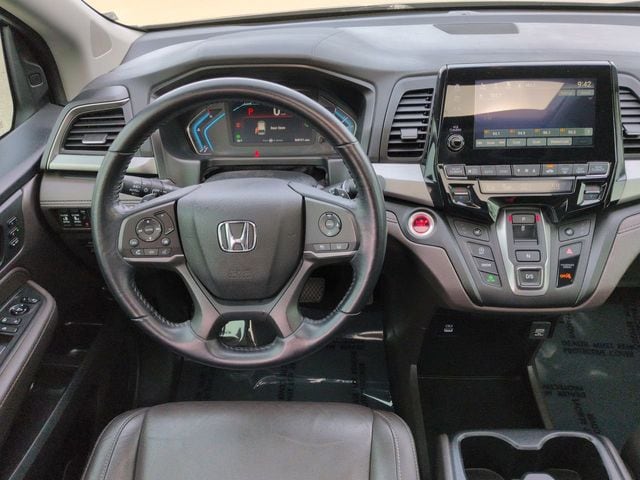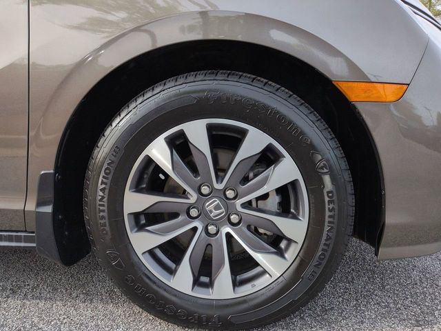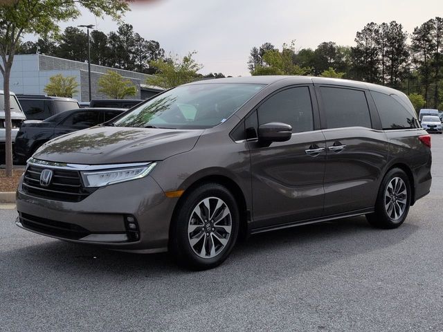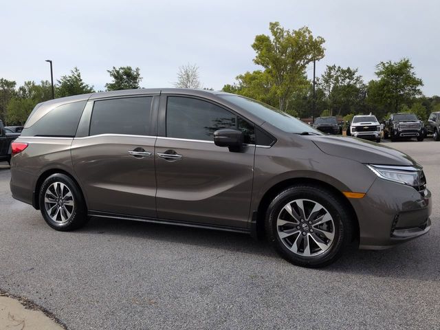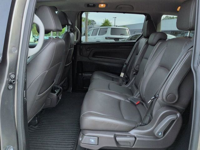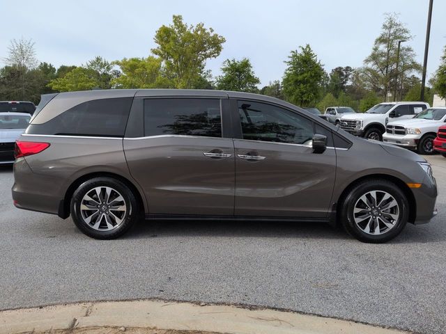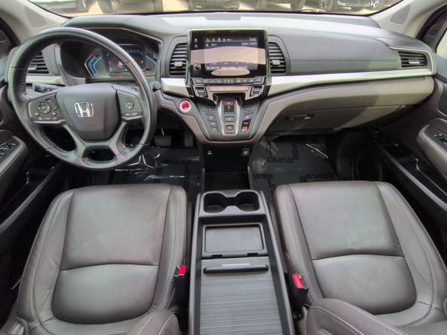 This 2022 Honda Odyssey EX-L in Pacific Pewter Metallic features: 18" Machine-Finished Alloy Wheels, 3rd row seats: split-bench, 4-Wheel Disc Brakes, 7 Speakers, ABS brakes, Adaptive Cruise Control, Adaptive Cruise Control: Adaptive Cruise Control (ACC) with Low-Speed Follow, Air Conditioning, AM/FM radio: SiriusXM, Android Auto, Apple Carplay, Apple CarPlay/Android Auto, Auto High-beam Headlights, Auto-dimming Rear-View mirror, Automatic temperature control, Backup Camera, Blind Spot Information (BSI) System warning, Bluetooth w/ Audio Streaming, Brake assist, Exterior Parking Camera Rear, Front Bucket Seats, Front dual zone A/C, Front fog lights, Hands Free Liftgate, Heated door mirrors, Heated Front Bucket Seats, Heated Seats, Leather Seat Trim, Leather Seats, Memory Package, Memory seat, Moonroof, Multi Zone Climate Control, Navigation System, Parking Sensors, Power door mirrors, Power driver seat, Power Liftgate, Power Mirror Package, Power moonroof, Power Package, Power windows, Premium Audio Package, Premium Package, Premium Sound Package, Push Button Start, Radio data system, Radio: 160-Watt AM/FM/HD/SiriusXM Audio System, Rear air conditioning, Remote keyless entry, Speed control, Sunroof/Moonroof, Telescoping steering wheel, Tilt steering wheel, Wireless Charging Pad.