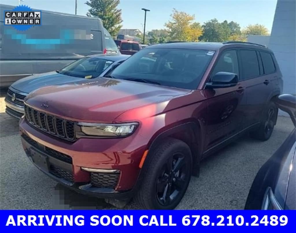 This 2023 Jeep Grand Cherokee L Limited in Velvet Red Pearlcoat features: 4D Sport Utility, 3.6L V6 24V VVT, 8-Speed Automatic, 4WD, 3rd Row Seating, 3rd row seats: split-bench, 4-Wheel Disc Brakes, 4G WiFi Hotspot Telematics, ABS brakes, Active Noise Control System, Adaptive Cruise Control, AM/FM radio: SiriusXM with 360L, Android Auto, Apple Carplay, Audio memory, Auto Emergency Braking, Auto High-beam Headlights, Automatic temperature control, Backup Camera, Black Appearance Package, Blind Spot Monitoring, Bluetooth w/ Audio Streaming, Brake assist, Capri Leatherette Seats, Cold Weather Package, Compass, Delay-off headlights, Dual-Pane Panoramic Sunroof, Electronic Stability Control, Emergency communication system, Four wheel independent suspension, Front Center Armrest w/Storage, Front dual zone A/C, Front fog lights, Front Pedestrian Braking, Full Speed Auto Collision Warning Plus, Fully automatic headlights, Garage door transmitter, Gloss Black Exterior Accents, Heated door mirrors, Heated front seats, Heated rear seats, Heated steering wheel, Hill Start Assist, Illuminated entry, Interior Rear Facing Camera, Lane Departure Warning, Lane Keeping System, Leather Seats, Limited Package, Low tire pressure warning, Memory Package, Memory seat, Molded In Color Black/Gloss Black Roof Rails, Multi Zone Climate Control, Navigation System, Normal Duty Suspension, Outside temperature display, Overhead console, Panic alarm, Panoramic Sunroof/Moonroof, Parking Sensors, ParkView Rear Back-Up Camera, Power door mirrors, Power Liftgate, Power Mirror Package, Power Package, Power windows, Quick Order Package 23E, Radio: Uconnect 5 Nav w/10.1" Display, Rear air conditioning, Rear Climate Package, Rear Cross Traffic Alert, Rear window wiper, Reclining 3rd row seat, Remote keyless entry, Reverse Brake Assist, Reverse Sensing, Security system, Skid Plate Package, Speed control, Speed-Sensitive Wipers, Split folding rear seat, Spoiler, Steering wheel mounted audio controls, Telescoping steering wheel, Tilt steering wheel, Traction control, Trip computer, Turn signal indicator mirrors, Wheels: 20" x 8.5" Gloss Black Painted Aluminum.