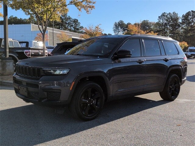 This 2023 Jeep Grand Cherokee L Altitude in Baltic Gray Metallic Clearcoat features: 4D Sport Utility, 3.6L V6 24V VVT, 8-Speed Automatic, 4WD, 115V Auxiliary Power Outlet, 3rd Row Charge-Only USB Ports, 3rd Row Seating, 3rd row seats: split-bench, 4-Wheel Disc Brakes, 6 Speakers, ABS brakes, Adaptive Cruise Control, Altitude Appearance Package, Android Auto, Apple Carplay, Auto LED Headlights, Automatic temperature control, Backup Camera, Black Headliner, Blind Spot Monitoring, Bluetooth w/ Audio Streaming, Brake assist, Capri Leatherette/Suede Seats, Cold Weather Package, Compass, Delay-off headlights, Delete Laredo Badge, Electronic Stability Control, Emergency communication system, Four wheel independent suspension, Front Center Armrest w/Storage, Front dual zone A/C, Front Pedestrian Braking, Full Speed Auto Collision Warning Plus, Fully automatic headlights, Gloss Black Exterior Accents, Heated door mirrors, Heated Front Seats, Heated Steering Wheel, Hill Start Assist, Illuminated entry, Low tire pressure warning, Molded In Color Black/Gloss Black Roof Rails, Multi Zone Climate Control, Outside temperature display, Overhead console, Panic alarm, Parking Sensors, ParkView Rear Back-Up Camera, Power door mirrors, Power driver seat, Power Liftgate, Power Mirror Package, Power Package, Power steering, Power windows, Preferred Equipment Package, Push Button Start, Quick Order Package 23B Altitude, Radio data system, Radio: Uconnect 5 w/8.4" Display, Rain Sensitive Windshield Wipers, Rear air conditioning, Rear Climate Package, Rear Cross Traffic Alert, Rear window wiper, Remote keyless entry, Remote Start, Remote Start System, Reverse Brake Assist, Reverse Sensing, Safety Package, Security system, Selectable Tire Fill Alert, Speed control, Speed-Sensitive Wipers, Split folding rear seat, Spoiler, Steering wheel mounted audio controls, Sunroof/Moonroof, Telescoping steering wheel, Tilt steering wheel, Traction control, Trip computer, Wheels: 20" x 8.5" Gloss Black Painted Aluminum, Wireless Charging Pad.