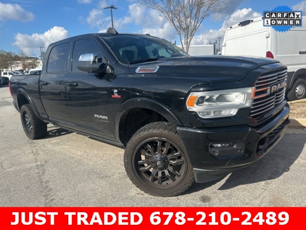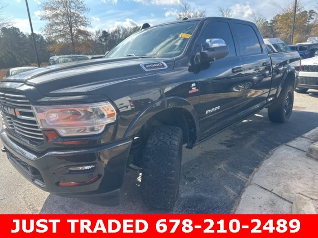 This 2021 Ram 2500 Laramie in Diamond Black Crystal Pearlcoat features: 4D Crew Cab, Cummins 6.7L I6 Turbodiesel, 6-Speed Automatic, 4WD, 1-Year SiriusXM Guardian Trial, 17 Speaker harman kardon Premium Sound, 2nd Row In Floor Storage Bins, 4-Wheel Disc Brakes, 4G LTE Wi-Fi Hot Spot, 4G WiFi Hotspot Telematics, 5-Year SiriusXM Traffic Service, 5th Wheel/Gooseneck Towing Prep Group, 8.4" Touchscreen Display, ABS brakes, Active Noise Control System, Adjustable pedals, Android Auto, Apple CarPlay, Apple Carplay, Apple CarPlay/Android Auto, Auto High Beam Headlamp Control, Auto-dimming Rear-View mirror, Automatic temperature control, Backup Camera, Bed Utility Group, Black Interior Accents, Bluetooth w/ Audio Streaming, Body Color Door Handles, Body Color Grille Surround, Brake assist, Cold Weather Group, Cold Weather Package, Compass, CTR Stop Lamp w/Cargo View Camera, Dash Pass Thru Wire Circuits, Delay-off headlights, Disassociated Touchscreen Display, Electronic Stability Control, Electronically Controlled Throttle, Engine Block Heater, Exterior Mirrors w/Memory, Foam Bottle Insert (Door Trim Panel), For Details Visit DriveUconnect.com, Front Center Armrest w/Storage, Front dual zone A/C, Front fog lights, Front Seat Back Map Pockets, Fully automatic headlights, Garage door transmitter, Google Android Auto, GPS Antenna Input, GPS Navigation, HD Radio, HD Surround Vision, Heated Front Seats, Heated front seats, Heated Second Row Seats, Heated Steering Wheel, Heated steering wheel, I/P Mounted Auxiliary Switches, Illuminated entry, Integrated Center Stack Radio, Integrated Voice Command w/Bluetooth, Laramie Level B Equipment Group, Leather Seats, Leather steering wheel, Leather Trim 40/20/40 Bench Seat, LED Bed Lighting, Low tire pressure warning, Memory Package, Mirror-Mounted Aux Reverse Lamps, MOPAR Deployable Bed Step, MOPAR Spray In Bedliner, MOPAR Winter Front Grille Cover, Navigation System, Off-Road Information Pages, Outside temperature display, Painted Front Bumper, Painted Rear Bumper, Panic alarm, Parking Sensors, ParkView Rear Back-Up Camera, Power 2-Way Passenger Lumbar Adjust, Power Adjust 8-Way Driver Seat, Power Adjust 8-Way Front Passenger Seat, Power Adjustable Convex Aux Mirrors, Power Adjustable Pedals w/Memory, Power Chrome Tow Mirrors w/Convex Spotter & Memory, Power Deployable Running Boards, Power door mirrors, Power Mirror Package, Power Package, Power passenger seat, Power Running Boards, Power Sunroof, Preferred Equipment Package, Premium Audio Package, Premium Sound Package, Pro Trailer Backup Assist, Pro Trailer Hitch Assist, Protection Group, Push Button Start, Quick Order Package 2HH Laramie, Radio data system, Radio: Uconnect 4 w/8.4" Display, Radio: Uconnect 4C Nav w/8.4" Display, Radio/Driver Seat/Mirrors/Pedals Memory, Rain Sensitive Windshield Wipers, Rear 60/40 Folding Seat, Rear seat center armrest, Remote keyless entry, Remote Start, Remote Tailgate Release, Reverse Brake Assist, Reverse Sensing, Security system, SiriusXM Satellite Radio, SiriusXM Traffic Plus, SiriusXM Travel Link, Skid Plate Package, Split folding rear seat, Sport Appearance Package, Sport Decal, Steering wheel mounted audio controls, Sunroof/Moonroof, Surround View Camera System, Tilt steering wheel, Tip Start, Tow Hooks, Towing Technology Group B, Traction control, Trailer Reverse Guidance, Trip computer, Turn signal indicator mirrors, Vendor Painted Cargo Box Tracking, Ventilated Front Seats, Wireless Charging Pad.