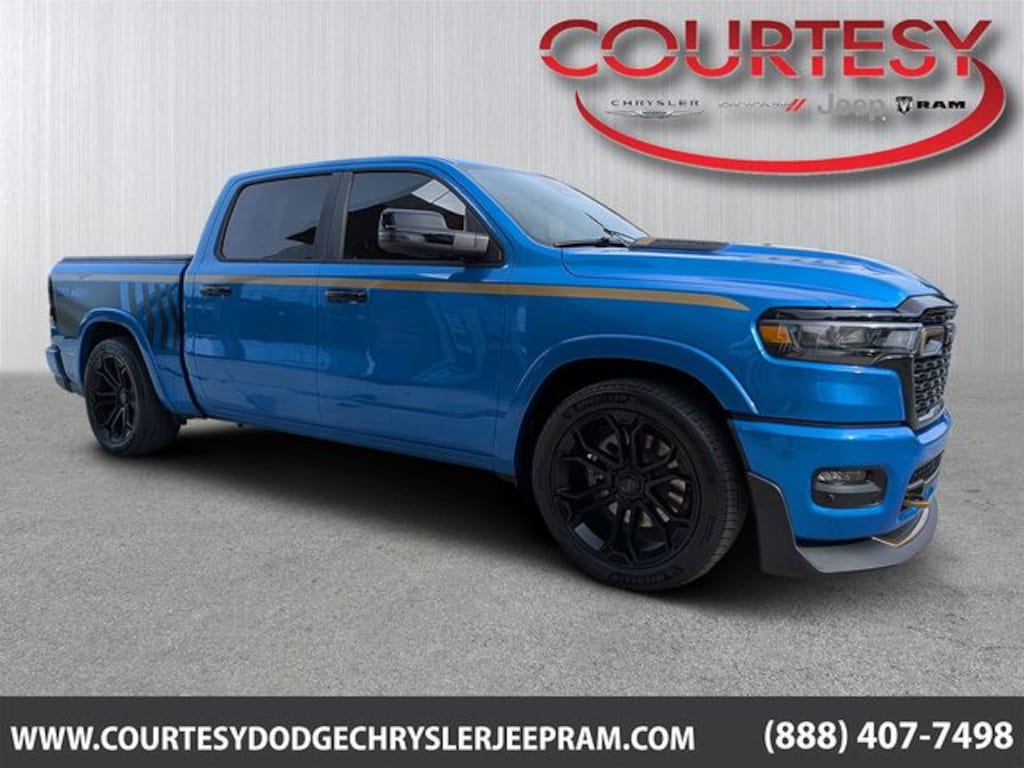 Big Horn Level 2 Equipment Group (115V Auxiliary Power Outlet, 115V Auxiliary Rear Power Outlet, 12" Touchscreen Display, 2nd Row in Floor Storage Bins, 3 Rear Seat Head Restraints, 4 Way Front Headrests, 400W Inverter, 4G LTE Wi-Fi Hot Spot, 9 Amplified Speakers with Subwoofer, Air Conditioning ATC with Dual Zone Control, Apple CarPlay, Auto Power-Folding Mirrors, Auto-Dimming Exterior Driver Mirror, Auto-Dimming Rear-View Mirror, Black Exterior Mirrors, Black Premium Power Mirrors, Body Color Fender Flares, Bucket Seats, Center Console Parts Module, Cluster 7.0" TFT Color Display, Configurable Drive Mode, Connected Travel and Traffic Services, Connectivity - US/Canada, Convex Wide-Angle Exterior Mirror Insert, Deluxe Cloth Bucket Seats, Disassociated Touchscreen Display, Exterior Mirrors Courtesy Lamps, Exterior Mirrors with Heating Element, Exterior Mirrors with Supplemental Signals, Front Seat Back Map Pockets, Full Length Floor Console, Global Telematics Box Module, Glove Box Lamp, Google Android Auto, GPS Antenna Input, GPS Navigation, HD Radio, Heated Front Seats, Heated Steering Wheel, Integrated Center Stack Radio, Integrated Voice Command with Bluetooth, Leather Wrapped Steering Wheel, LED Dome Lamp with on/Off Switch, LED Footwell Lighting, Manual Adjust 4-Way Front Passenger Seat, Media Hub with 2 Charge Only USBs, Overhead LED Lamps, Power 2-Way Driver Lumbar Adjust, Power Adjust 8-Way Driver Seat, Power Adjustable Pedals, Premium Overhead Console, Radio: Uconnect 5 Navigation with 12.0" Display, Rear 60/40 Folding Seat, Rear Center Armrest, Rear Power Sliding Window, Rear Window Defroster, Remote Tailgate Release, Security Alarm, SiriusXM Radio Service, SiriusXM with 360L, Steering Wheel Mounted Audio Controls, Sun Visors with Illuminated Vanity Mirrors, Universal Garage Door Opener, and USB Host Flip), Night Edition (Accent Color Door Handles, Accent Color Premium Power Mirrors, Accent Color Tailgate Handle, Anti-Spin Differential Rear Axle, Black Exterior Truck Badging, Black Headlamp Bezels, Black Interior Accents, Black Painted Exterior Mirrors Caps, Black Tail Lamp Bezels, Body Color Front Bumper, Body Color Rear Bumper with Step Pads, Dual Exhaust with Black Tips, Grille Black Surround Black Mesh, RAM Grille Badge - Black, and Wheels: 20" x 9.0" Aluminum Painted Clad), Quick Order Package 27Z Big Horn, 4-Wheel Disc Brakes, 48V Belt Starter Generator, 6 Speakers, ABS brakes, Air Conditioning, Alloy wheels, AM/FM radio, Apple CarPlay/Android Auto, Auto High-beam Headlights, Brake assist, Bumpers: chrome, Cloth Bucket Seats, Cluster 12" TFT Color Display, Compass, Delay-off headlights, Dome Dual LED Reading Lamp, Driver door bin, Dual front impact airbags, Dual front side impact airbags, Dual-Pane Panoramic Sunroof, Electronic Stability Control, Front anti-roll bar, Front Bucket Seats, Front Center Armrest w/Storage, Front fog lights, Front License Plate Bracket, Front reading lights, Front wheel independent suspension, Fully automatic headlights, Heated door mirrors, Illuminated entry, Low tire pressure warning, Manual Adjust 4-Way Driver Seat, Manual Folding Exterior Mirrors, Manufacturer's Statement of Origin, Occupant sensing airbag, Outside temperature display, Overhead airbag, Overhead console, Panic alarm, ParkView Rear Back-Up Camera, Passenger door bin, Passenger vanity mirror, Power door mirrors, Power steering, Power windows, Radio data system, Radio: Uconnect 5 W with 8.4" Display, RAM Grille Badge - Chrome, Rear anti-roll bar, Rear step bumper, Remote keyless entry, Speed control, Supplier Part Trac Price includes: $1000 - 2026 Southeast BC Retail Bonus Cash. Exp. 04/30/2026 $3500 - 2026 National Retail Bonus Cash . Exp. 04/30/2026 $500 - 2026 Southeast BC Retail Bonus Cash. Exp