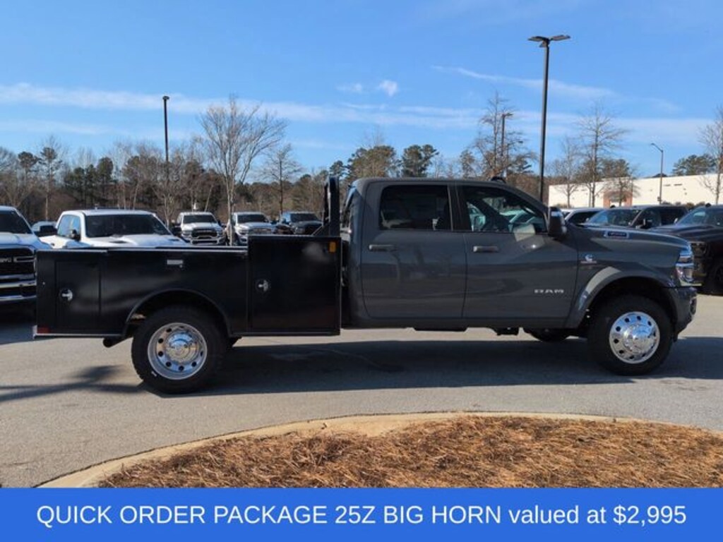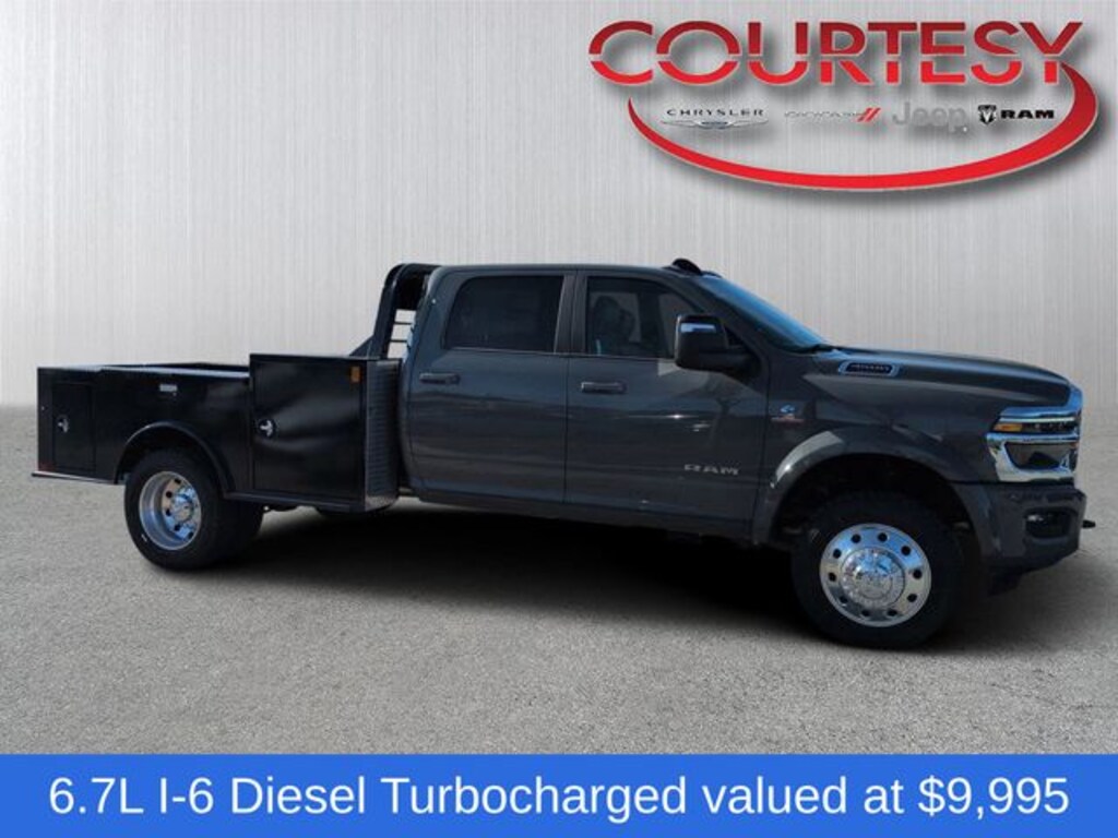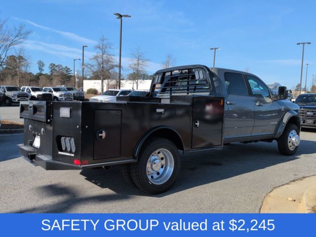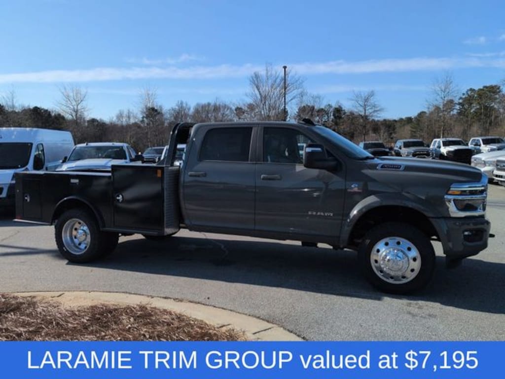 Cold Weather Group (Engine Block Heater and MOPAR Winter Front Grille Cover), Laramie Trim Group (#1 Seat Foam Cushion, 115V Auxiliary Power Outlet, 115V Auxiliary Rear Power Outlet, 12.0" Touchscreen Display, 17 Speaker Harman/Kardon Premium Sound, 2 Way Rear Headrest Seat, 2-Door Passive Entry, Front Door Locks, 4 Way Front Headrests, 400W Inverter, 4G LTE Wi-Fi Hot Spot, Air Conditioning ATC with Dual Zone Control, Alexa Built-in, Apple CarPlay, Auto High Beam Headlamp Control, Bi-Function LED Projector Headlamps, Body Color Door Handles, Body Color Fender Flares, Bucket Seats, Center Hub, CHMSL Lamp with Camera, Chrome Billets/Accents Grille, Cluster 12" TFT Color Display, Connected Travel and Traffic Services, Connectivity - US/Canada, Courtesy Lamps, Digital Rearview Mirror, Disassociated Touchscreen Display, Dual Glove Boxes, Dual Wireless Charging Pad, Foam Bottle Insert (door Trim Panel), Folding Flat Load Floor Storage, For Details, Visit DriveUconnect.com, For More Info, Call 800-643-2112, Front Door Accent Lighting, Front Seat Back Map Pockets, Full Length Upgraded Floor Console, Global Telematics Box Module, Glove Box Lamp, Google Android Auto, GPS Antenna Input, GPS Navigation, HD Radio, Heated Front Seats, Heated Second Row Seats, Heated Steering Wheel, High Back Seats, Highline Door Trim Panel, Integrated Voice Command with Bluetooth, Leather Trimmed Bucket Seats, LED Daytime Running Headlamps, LED Dome Lamp with on/Off Switch, LED Interior Lighting, Locking Lower Glove Box, Luxury Steering Wheel, Media Hub with 2 Charge Only USBs, Off-Road Info Pages, Overhead LED Lamps, Painted Front Bumper, Painted I/P Bezels with Premium Film, ParkSense Front/Rear Park Assist System, Power 2-Way Driver Lumbar Adjust, Power 2-Way Passenger Lumbar Adjust, Power Adjust 8-Way Driver Seat, Power Adjust 8-Way Front Passenger Seat, Premium Overhead Console, Radio: Uconnect 5 Navigation with 12.0" Display, Rain Sensitive Windshield Wipers, Rear 60/40 Folding Seat, Rear Door Accent Lighting, Rear Power Sliding Window, Rear Window Defroster, Remote Start System, SiriusXM Radio Service, SiriusXM with 360L, Steering Wheel Mounted Audio Controls, Sun Visors with Illuminated Vanity Mirrors, Temperature and Compass Gauge, Trailer Tow Pages, Universal Garage Door Opener, Ventilated Front Seats, and Wheels: 19.5" x 6.0" Forged Aluminum Polished), Quick Order Package 25Z Big Horn (19.5" x 6.0" Steel Wheels, 40/20/40 Split Bench Seat, Acoustic Front Door Glass, Black Exterior Mirrors, Black-Out Tape, Body Insulation, Bright Front Bumper, Chrome Grille Surround, Cloth 40/20/40 Bench Seat, Exterior Mirrors Courtesy Lamps, Exterior Mirrors with Heating Element, Exterior Mirrors with Supplemental Signals, Front Armrest with Cupholders, Manual Adjust 4-Way Driver Seat, Manual Adjust 4-Way Front Passenger Seat, Manual Folding Exterior Mirrors, Manual Telescoping Mirrors, Matte Black Mesh Grille with Chrome, Mirror Power Heat Fold Telescope Black, Mirror Running Lights, Painted I/P Bezels with Hydrographics, Passenger Sun Visor with Illuminated Mirror, Power Adjust Mirrors, Power-Adjustable Convex Aux Mirrors, Premium Vinyl Door Trim with Map Pocket, RAM Door Badges, Rear Folding Seat, Remote USB Port - Charge Only, Satin Chrome Key Fob, Storage Tray, Tinted Acoustic Windshield Glass, Trailer Brake Control, Trailer Light Check, and Traveler/Mini Trip Computer), Safety Group (Adaptive Steering System, Drowsy Driver Detection, Lane Keep Assist, and Security Alarm), 4-Wheel Disc Brakes, 4.44 Axle Ratio, 6 Speakers, ABS brakes, Air Conditioning, AM/FM radio: SiriusXM, Apple CarPlay/Android Auto, Compass, Delay-off headlights, Driver door bin, Dual front impact airbags, Dual rear wheels, Electronic Stability Control, Emergency communication syste Price includes $29,995 dealer added a