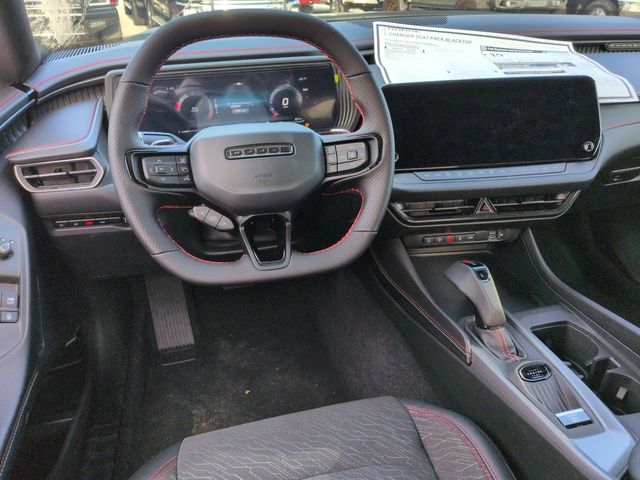 Blacktop Package (Dark Exterior Badging, Dual Rear Exhaust with Black Tips, and Wheels: 20" x 10" Dark Finish Aluminum), Quick Order Package 22P Scat Pack, Two Tone Paint Group, 10 Speakers, 2-Way Manual Adjust Front Head Restraints, 2-Way Power Driver Lumbar Adjust, 4-Wheel Disc Brakes, 4G LTE Wi-Fi Hot Spot, 8-Way Power Driver Seat Adjust, ABS brakes, Active Noise Control System, Air Conditioning, Alloy wheels, AM/FM radio: SiriusXM w/360L, Apple CarPlay/Android Auto, Auto-dimming Rear-View mirror, Automatic temperature control, Black Seats, Brake assist, Bumpers: body-color, Compass, Connectivity - US/Canada, Delay-off headlights, Disassociated Touchscreen Display, Driver door bin, Driver vanity mirror, Dual front impact airbags, Dual front side impact airbags, Electronic Stability Control, Emergency communication system: Dodge Connect, Four wheel independent suspension, Front anti-roll bar, Front Bucket Seats, Front Center Armrest, Front dual zone A/C, Front reading lights, Fully automatic headlights, Garage door transmitter, Heated door mirrors, Heated Exterior Mirrors, Heated Front Seats, Heated front seats, Heated steering wheel, Illuminated entry, Integrated Center Stack Radio, Knee airbag, Leather Shift Knob, Leatherette/Cloth Performance Seats, Low Back Bucket Seats, Low tire pressure warning, Occupant sensing airbag, Outside temperature display, Overhead airbag, Overhead console, Panic alarm, ParkView Rear Back-Up Camera, Passenger door bin, Passenger vanity mirror, Power Adjust Mirrors, Power door mirrors, Power driver seat, Power steering, Power windows, Radio data system, Radio: Uconnect 5 with 12.3" Display, Rear anti-roll bar, Rear reading lights, Rear seat center armrest, Rear window defroster, Remote keyless entry, Security system, Speed control, Split folding rear seat, Spoiler, Sport steering wheel, Steering wheel mounted audio controls, Tachometer, Telescoping steering wheel, Tilt steering wheel, Traction control, Trip computer, Variably intermittent wipers, Wheels: 20" x 10" Aluminum, Wireless Apple CarPlay, and Wireless Google Android Auto.