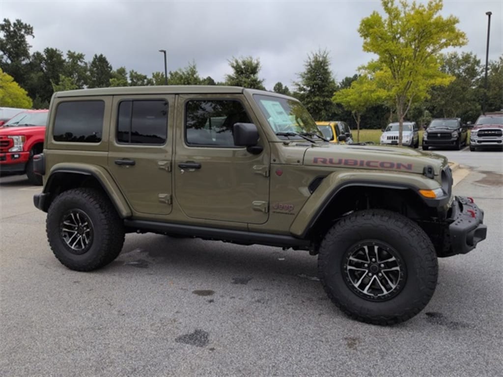 Convenience Group (Heated Front Seats, Heated Steering Wheel, and Universal Garage Door Opener), Quick Order Package 24Y Rubicon X (Acoustic Front Seat Area Carpet, Acoustic Laminated Front Door Glass, Alpine Premium Audio System, Body Color 3-Piece Hard Top, Body Color Rubicon Highline Flare, Freedom Panel Storage Bag, Leather Wrapped Park Brake Handle, Leather Wrapped Shift Knob, MOPAR Hardtop Headliner, MOPAR Hinge-Gate Reinforcement, Nappa Leather Seats, Power 4-Way Driver Lumbar Adjust, Power 4-Way Passenger Lumbar Adjust, Power Adjust 8-Way Driver Seat, Power Adjust 8-Way Front Passenger Seat, Premium Door Trim Panel, Rear Window Defroster, Rear Window Wiper/Washer, Steel Front Bumper, and Steel Rear Bumper), Safety Group (Auto High Beam Headlamp Control, Blind Spot & Cross Path Detection, and ParkSense Rear Park Assist System), Technology Group (12.3" Touchscreen Display, 4G LTE Wi-Fi Hot Spot, Apple CarPlay, Auto-Dimming Rear-View Mirror, Connected Travel & Traffic Services, Connectivity - US/Canada, Google Android Auto, GPS Navigation, HD Radio, Integrated Off-Road Camera, Integrated Voice Command w/Bluetooth, Radio: Uconnect 5 Nav w/12.3" Display, SiriusXM Radio Service, and SiriusXM w/360L), Trailer Tow Prep Package, Xtreme 35" Tire Package (35" Tire Suspension, 97 MPH Vehicle Max Speed Calibration, Anti-Lock 4-Wheel Disc Perf Brakes, and Wheels: 17" x 8" Machined w/Black Pockets), 4-Wheel Disc Brakes, 8 Speakers, ABS brakes, Air Conditioning, Alloy wheels, AM/FM radio: SiriusXM, Apple CarPlay/Android Auto, Automatic temperature control, Aux Battery, Auxiliary Switches, Brake assist, Class II Receiver Hitch, Cloth Low-Back Bucket Seats, Compass, Delay-off headlights, Driver door bin, Driver vanity mirror, Dual front impact airbags, Dual front side impact airbags, Electronic Stability Control, Emergency communication system: Jeep Connect, Front anti-roll bar, Front Bucket Seats, Front Center Armrest w/Storage, Front dual zone A/C, Front fog lights, Front reading lights, Fully automatic headlights, Heated door mirrors, Illuminated entry, Integrated roll-over protection, Low tire pressure warning, MOPAR All-Weather Floor Mats, Non-Lock Fuel Cap w/o Discriminator, Occupant sensing airbag, Outside temperature display, Overhead airbag, Panic alarm, ParkView Rear Back-Up Camera, Passenger door bin, Passenger vanity mirror, Performance Suspension, Power door mirrors, Power steering, Power Top Quarter Window Storage Bag, Power windows, Radio data system, Radio: Uconnect 5 w/12.3" Display, Rear anti-roll bar, Rear reading lights, Remote keyless entry, Removable Rear Quarter Windows, Security system, Sky 1-Touch Power Top, Speed control, Split folding rear seat, Steering wheel mounted audio controls, Stop-Start Dual Battery System, Tachometer, Telescoping steering wheel, Tilt steering wheel, Traction control, Trip computer, Variably intermittent wipers, Voltmeter, Wheel Flare Extensions, and Wheels: 17" x 7.5" Machined/Painted Black. Price includes: $2500 - 2025 National Retail Bonus Cash . Exp. 11/03/2025