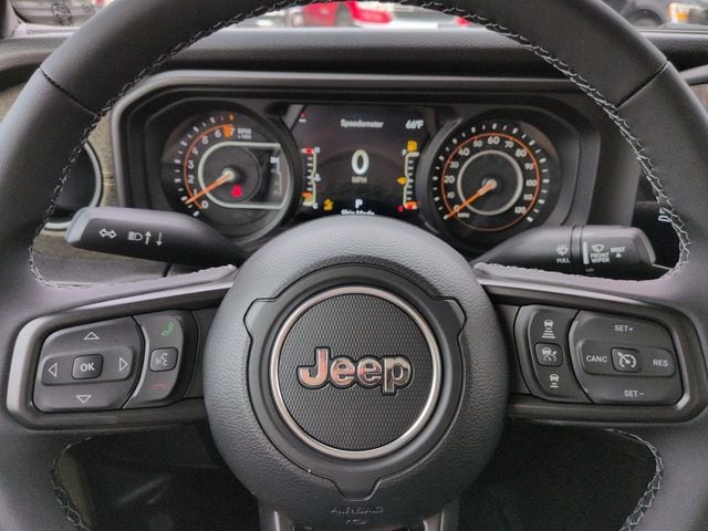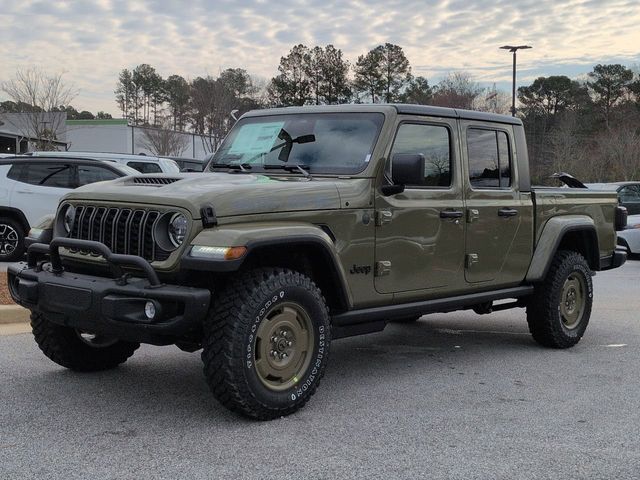 Quick Order Package 24T Willys 41 (2-Piece Body Color Fender Flares, 4WD Willys '41 Tailgate Decal, 97 Mph Vehicle Max Speed Calibration, Advanced Brake Assist, Air Conditioning with Auto Temp Control, Automatic Headlamps, Auxiliary Switches, Central ADAS Decision Module (CADM), Class IV Receiver Hitch, Cloth Low-Back Bucket Seats, Cluster 7.0" TFT Color Display, Corning Gorilla Glass, Daytime Running Lamp System, Daytime Running Lamps LED Accents, Deep Tint Sunscreen Windows, E-Locker Rear Axle, Front Door Locks 2-Door Passive Entry, Front Heavy Duty Red Accent Shock Absorbers, Front LED Fog Lamps, Full Speed Forward Collision Warning Plus, Green Soul Cloth Wrapped Mid-Bolster, Heavy-Duty Engine Cooling, Increased Travel Export Tuned Suspension, LED Premium Reflector Headlamps, LED Taillamps, MOPAR All-Weather Slush Mats, MOPAR Black Hood Graphic, MOPAR Triple Hoop Grille Guard, Off-Road Plus Mode, Performance Hood, Power Heated Mirrors, Premium Wrapped Steering Wheel, Protection Sill Rails, Rear Heavy Duty Red Accent Shock Absorbers, Security Alarm, Steel Front Bumper, Sun Visors with Illuminated Vanity Mirrors, Trailer Hitch Zoom, Wheels: 17" x 7.5" Fully Painted, Willys '41, Willys '41 Retro Edition Gladiator Decal, and Willys '41 US Edition U.S. Hood Decal), 110 Mph Vehicle Max Speed Calibration, 12.3" Touchscreen Display, 3.73 Rear Axle Ratio, 4-Wheel Disc Brakes, 4G LTE Wi-Fi Hot Spot, 8 Speakers, ABS brakes, Air Conditioning, Alexa Built-in, AM/FM radio: SiriusXM with 360L, Apple CarPlay, Apple CarPlay/Android Auto, Black 3-Piece Hard Top, Brake assist, Compass, Connectivity - US/Canada, Delay-off headlights, Driver door bin, Driver vanity mirror, Dual front impact airbags, Dual front side impact airbags, Electronic Stability Control, For Details, Visit DriveUconnect.com, Freedom Panel Storage Bag, Front anti-roll bar, Front Bucket Seats, Front Center Armrest w/Storage, Front fog lights, Front reading lights, Google Android Auto, Illuminated entry, Integrated Center Stack Radio, Integrated roll-over protection, Low tire pressure warning, Normal Duty Suspension, Occupant sensing airbag, Outside temperature display, Overhead airbag, Panic alarm, ParkView Rear Back-Up Camera, Passenger door bin, Passenger vanity mirror, Power steering, Power windows, Radio data system, Radio: Uconnect 5 with 12.3" Display, Rear anti-roll bar, Rear reading lights, Rear Sliding Window, Rear Window Defroster, Remote keyless entry, SiriusXM Radio Service, SiriusXM with 360L, Speed control, Split folding rear seat, Steering wheel mounted audio controls, Tachometer, Telescoping steering wheel, Tilt steering wheel, Traction control, Trip computer, USB Host Flip, Variably intermittent wipers, Voltmeter, and Wheels: 17" x 7.5" Black Steel StyleD. Price includes: $1000 - 2026 National Retail Bonus Cash . Exp. 04/30/2026 $1000 - 2026 Southeast BC SFS Bonus Cash. Exp. 04/30/2026