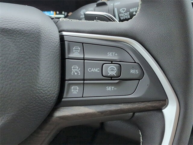 Laredo Altitude Appearance Package, Quick Order Package 2BB Laredo Altitude (12.3" Touchscreen Display, 240 Amp Alternator, 4G LTE Wi-Fi Hot Spot, Active Driving Assist System, Active Noise Control System, an-Teak/Satin Chrome Interior Accents, Apple CarPlay, Black Headliner, Body Color Door Handles (B), Capri Leatherette/Suede Seats, Connected Travel and Traffic Services, Connectivity - US/Canada, Delete Laredo Badge, Disassociated Touchscreen Display, Dual Exhaust Tips, Exterior Accents Dark Neutral Metallic, For Details, Visit DriveUconnect.com, Front Fascia Upper A, Global Telematics Box Module (TBM), Google Android Auto, GPS Antenna Input, GPS Navigation, HD Radio, Heated Front Seats, Heated Steering Wheel, Heavy-Duty Engine Cooling, Integrated Center Stack Radio, Integrated Voice Command with Bluetooth, Intersection Collision Assist System, Power Liftgate, Radio: Uconnect 5 Nav with 12.3" Display, Rain Sensitive Windshield Wipers, Rear Fascia Upper A, Remote Start System, Selectable Tire Fill Alert, SiriusXM with 360L, Traffic Sign Recognition, USB Host Flip, Wheels: 18" x 8.0" Fully Painted Aluminum 1, and Wireless Charging Pad), 4-Wheel Disc Brakes, 6 Speakers, ABS brakes, Air Conditioning, Alloy wheels, AM/FM radio: SiriusXM, Anti-whiplash front head restraints, AppLink/Apple CarPlay and Android Auto, Automatic temperature control, Auxiliary Battery, Brake assist, Bumpers: body-color, Cloth Seats, Compass, Delay-off headlights, Driver door bin, Driver vanity mirror, Dual front impact airbags, Dual front side impact airbags, Electronic Stability Control, Emergency communication system, Four wheel independent suspension, Front anti-roll bar, Front Bucket Seats, Front Center Armrest w/Storage, Front dual zone A/C, Front reading lights, Fully automatic headlights, Gloss Black Exterior Mirrors, Heated door mirrors, Heated Exterior Mirrors, Illuminated entry, Knee airbag, Low tire pressure warning, Manual Folding Exterior Mirrors, Normal Duty Suspension, Occupant sensing airbag, Outside temperature display, Overhead airbag, Overhead console, Panic alarm, ParkView Rear Back-Up Camera, Passenger door bin, Passenger vanity mirror, Power door mirrors, Power driver seat, Power steering, Power Sunroof, Power windows, Radio data system, Radio: Uconnect 5 with 8.4" Display, Rear anti-roll bar, Rear reading lights, Rear window defroster, Rear window wiper, Remote keyless entry, Security system, Speed control, Speed-Sensitive Wipers, Split folding rear seat, Spoiler, Steering wheel mounted audio controls, Tachometer, Telescoping steering wheel, Tilt steering wheel, Traction control, Trip computer, Variably intermittent wipers, Voltmeter, and Wheels: 18" x 8.0" Fully Painted AluminuM.