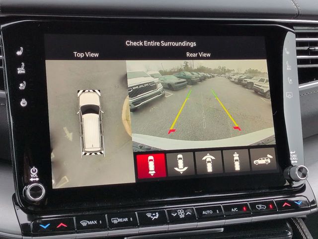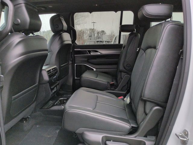 Black Appearance Package (118 Mph Maximum Speed Calibration, Black Exterior Accents, Titanium Daylight Opening Upper, Titanium Upper Grille Applique, and Wheels: 22" x 9" Painted Gloss Black), Limited Reserve Package, Quick Order Package 29D Reserve (19 Speaker McIntosh Audio System, 2nd Row Manual Window Shades, 3 Panel Sunroof, Augmented HUD, Cargo Cover, Cluster 12" TFT Color Display, Instrument Panel, Interior Rear Facing Camera, Luxury Front and Rear Floor Mats, P and P Park and Unpark Assist with Stop System, Power Deployable Running Boards, Quadra-Lift Air Suspension, Reversible Carpet/Vinyl Cargo Mat, Semi Active Damping, Side Distance Warning, Smartphone as a Key Prep, and Surround View Camera System), 3.55 Rear Axle Ratio, 3rd row seats: bench, 4-Wheel Disc Brakes, 9 Speakers, ABS brakes, Air Conditioning, Alloy wheels, AM/FM radio: SiriusXM with 360L, Anti-whiplash front head restraints, Apple CarPlay/Android Auto, Audio memory, Auto Adjust in Reverse Exterior Mirrors, Auto High-beam Headlights, Auto-dimming door mirrors, Auto-Dimming Exterior Driver Mirror, Auto-dimming Rear-View mirror, Auto-leveling suspension, Automatic temperature control, Brake assist, Bumpers: body-color, Compass, Delay-off headlights, Driver door bin, Driver vanity mirror, Driver's Seat Mounted Armrest, Dual front impact airbags, Dual front side impact airbags, Electronic Stability Control, Emergency communication system: Jeep Connect, Exterior Mirrors Approach Lamps, Exterior Mirrors with Memory, Exterior Mirrors with Supplemental Signals, Exterior Parking Camera Rear, Four wheel independent suspension, Front anti-roll bar, Front Bucket Seats, Front Center Armrest w/Storage, Front dual zone A/C, Front fog lights, Front reading lights, Fully automatic headlights, Garage door transmitter, Heated door mirrors, Heated Exterior Mirrors, Heated front seats, Heated rear seats, Heated steering wheel, Illuminated entry, Knee airbag, Leather Trimmed Bucket Seats, Low tire pressure warning, Memory seat, Navigation System, Normal Duty Suspension, Occupant sensing airbag, Outside temperature display, Overhead airbag, Overhead console, Panic alarm, Passenger door bin, Passenger seat mounted armrest, Passenger vanity mirror, Power door mirrors, Power driver seat, Power Liftgate, Power passenger seat, Power steering, Power windows, Radio data system, Radio: Uconnect 5 Nav with 12.0" Display, Rain sensing wipers, Rear air conditioning, Rear anti-roll bar, Rear reading lights, Rear seat center armrest, Rear window defroster, Rear window wiper, Reclining 3rd row seat, Remote keyless entry, Security system, Speed control, Speed-sensing steering, Speed-Sensitive Wipers, Split folding rear seat, Steering wheel memory, Steering wheel mounted audio controls, Tachometer, Telescoping steering wheel, Tilt steering wheel, Traction control, Trip computer, Turn signal indicator mirrors, Variably intermittent wipers, Ventilated front seats, Ventilated rear seats, Voltmeter, and Wheels: 20" x 9" Aluminum Painted.