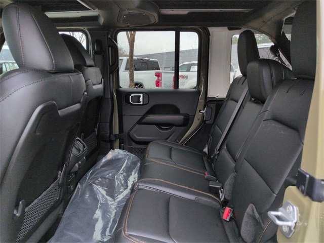 Quick Order Package 24G, Sahara Popular Equipment Group (12.3" Touchscreen Display, 4G LTE Wi-Fi Hot Spot, Alpine Premium Audio System, Apple CarPlay, Auto High Beam Headlamp Control, Auto-Dimming Rear-View Mirror, Blind Spot & Cross Path Detection, Connected Travel & Traffic Services, Connectivity - US/Canada, For More Info, Call 800-643-2112, Google Android Auto, GPS Navigation, Hard Seat Back, HD Radio, Integrated Center Stack Radio, Integrated Off-Road Camera, Integrated Voice Command w/Bluetooth, Leather Wrapped Park Brake Handle, Leather Wrapped Shift Knob, McKinley Trimmed Seats, ParkSense Rear Park Assist System, Power 4-Way Driver Lumbar Adjust, Power 4-Way Passenger Lumbar Adjust, Power Adjust 8-Way Driver Seat, Power Adjust 8-Way Front Passenger Seat, Radio: Uconnect 5 Nav w/12.3" Display, Side Steps, SiriusXM Radio Service, SiriusXM w/360L, and Universal Garage Door Opener), 3.45 Overall Top Gear Ratio, 4-Wheel Disc Brakes, 8 Speakers, ABS brakes, Air Conditioning, Alloy wheels, AM/FM radio: SiriusXM with 360L, Apple CarPlay/Android Auto, Automatic temperature control, Aux Battery, Brake assist, Cloth Low-Back Bucket Seats, Compass, Delay-off headlights, Driver door bin, Driver vanity mirror, Dual front impact airbags, Dual front side impact airbags, Electronic Stability Control, Emergency communication system: Jeep Connect, Front anti-roll bar, Front Bucket Seats, Front Center Armrest w/Storage, Front dual zone A/C, Front fog lights, Front reading lights, Fully automatic headlights, Heated door mirrors, Heated front seats, Heated steering wheel, Heavy Duty Suspension w/Gas Shocks, Illuminated entry, Integrated roll-over protection, Low tire pressure warning, MOPAR All-Weather Floor Mats, Non-Lock Fuel Cap w/o Discriminator, Occupant sensing airbag, Outside temperature display, Overhead airbag, Panic alarm, ParkView Rear Back-Up Camera, Passenger door bin, Passenger vanity mirror, Power door mirrors, Power steering, Power Top Quarter Window Storage Bag, Power windows, Radio data system, Radio: Uconnect 5 w/12.3" Display, Rear anti-roll bar, Rear reading lights, Rear Window Defroster, Rear Window Wiper/Washer, Remote keyless entry, Removable Rear Quarter Windows, Security system, Sky 1-Touch Power Top, Speed control, Split folding rear seat, Steering wheel mounted audio controls, Stop-Start Dual Battery System, Tachometer, Telescoping steering wheel, Tilt steering wheel, Traction control, Trip computer, Variably intermittent wipers, Voltmeter, and Wheels: 18" x 7.5" Machine/Painted Gray.