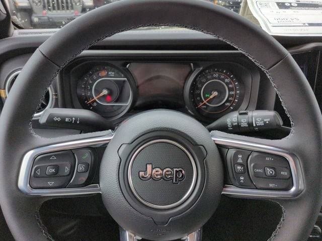 Quick Order Package 24G, Sahara Popular Equipment Group (12.3" Touchscreen Display, 4G LTE Wi-Fi Hot Spot, Alpine Premium Audio System, Apple CarPlay, Auto High Beam Headlamp Control, Auto-Dimming Rear-View Mirror, Blind Spot and Cross Path Detection, Connected Travel and Traffic Services, Connectivity - US/Canada, For More Info, Call 800-643-2112, Google Android Auto, GPS Navigation, Hard Seat Back, HD Radio, Integrated Center Stack Radio, Integrated Off-Road Camera, Integrated Voice Command with Bluetooth, Leather Wrapped Park Brake Handle, Leather Wrapped Shift Knob, McKinley Trimmed Seats, ParkSense Rear Park Assist System, Power 4-Way Driver Lumbar Adjust, Power 4-Way Passenger Lumbar Adjust, Power Adjust 8-Way Driver Seat, Power Adjust 8-Way Front Passenger Seat, Radio: Uconnect 5 Navigation with 12.3" Display, Side Steps, SiriusXM Radio Service, SiriusXM with 360L, and Universal Garage Door Opener), 3.45 Overall Top Gear Ratio, 4-Wheel Disc Brakes, 8 Speakers, ABS brakes, Air Conditioning, Alloy wheels, AM/FM radio: SiriusXM with 360L, Apple CarPlay/Android Auto, Automatic temperature control, Aux Battery, Brake assist, Cloth Low-Back Bucket Seats, Compass, Delay-off headlights, Driver door bin, Driver vanity mirror, Dual front impact airbags, Dual front side impact airbags, Electronic Stability Control, Emergency communication system: Jeep Connect, Front anti-roll bar, Front Bucket Seats, Front Center Armrest w/Storage, Front dual zone A/C, Front fog lights, Front reading lights, Fully automatic headlights, Heated door mirrors, Heated front seats, Heated steering wheel, Heavy Duty Suspension with Gas Shocks, Illuminated entry, Integrated roll-over protection, Low tire pressure warning, MOPAR All-Weather Floor Mats, Non-Lock Fuel Cap Without Discriminator, Occupant sensing airbag, Outside temperature display, Overhead airbag, Panic alarm, ParkView Rear Back-Up Camera, Passenger door bin, Passenger vanity mirror, Power door mirrors, Power steering, Power Top Quarter Window Storage Bag, Power windows, Radio data system, Radio: Uconnect 5 with 12.3" Display, Rear anti-roll bar, Rear reading lights, Rear Window Defroster, Rear Window Wiper/Washer, Remote keyless entry, Removable Rear Quarter Windows, Security system, Sky One-Touch Power Top, Speed control, Split folding rear seat, Steering wheel mounted audio controls, Stop-Start Dual Battery System, Tachometer, Telescoping steering wheel, Tilt steering wheel, Traction control, Trip computer, Variably intermittent wipers, Voltmeter, and Wheels: 18" x 7.5" Machine/Painted Gray. Price includes: $1000 - 2026 National Retail Bonus Cash . Exp. 04/30/2026