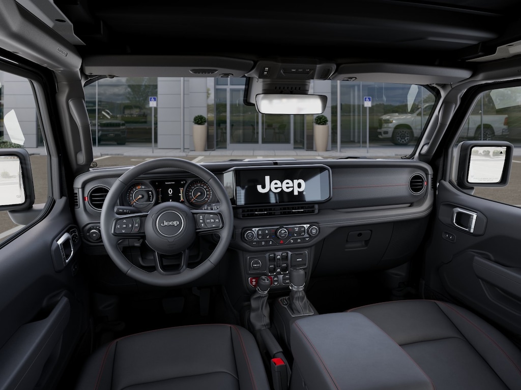 Convenience Group (Heated Front Seats, Heated Steering Wheel, and Universal Garage Door Opener), Quick Order Package 24R Rubicon, Safety Group (Auto High Beam Headlamp Control, Blind Spot and Cross Path Detection, and ParkSense Rear Park Assist System), Technology Group (12.3" Touchscreen Display, 4G LTE Wi-Fi Hot Spot, Apple CarPlay, Auto-Dimming Rear-View Mirror, Connected Travel and Traffic Services, Connectivity - US/Canada, For More Info, Call 800-643-2112, Google Android Auto, GPS Navigation, HD Radio, Integrated Center Stack Radio, Integrated Off-Road Camera, Integrated Voice Command with Bluetooth, Radio: Uconnect 5 Navigation with 12.3" Display, SiriusXM Radio Service, and SiriusXM with 360L), 4-Wheel Disc Brakes, 4.10 Rear Axle Ratio, 8 Speakers, ABS brakes, Air Conditioning, Alloy wheels, Alpine Premium Audio System, AM/FM radio: SiriusXM with 360L, Apple CarPlay/Android Auto, Automatic temperature control, Aux Battery, Auxiliary Switches, Brake assist, Class II Receiver Hitch, Cloth Low-Back Bucket Seats, Compass, Delay-off headlights, Driver door bin, Driver vanity mirror, Dual front impact airbags, Dual front side impact airbags, Electronic Stability Control, Emergency communication system: Jeep Connect, Front anti-roll bar, Front Bucket Seats, Front Center Armrest w/Storage, Front dual zone A/C, Front fog lights, Front reading lights, Fully automatic headlights, Heated door mirrors, Illuminated entry, Integrated roll-over protection, Low tire pressure warning, MOPAR All-Weather Floor Mats, Non-Lock Fuel Cap Without Discriminator, Occupant sensing airbag, Outside temperature display, Overhead airbag, Panic alarm, ParkView Rear Back-Up Camera, Passenger door bin, Passenger vanity mirror, Performance Suspension, Power door mirrors, Power steering, Power Top Quarter Window Storage Bag, Power windows, Radio data system, Radio: Uconnect 5 with 12.3" Display, Rear anti-roll bar, Rear reading lights, Rear Window Defroster, Rear Window Wiper/Washer, Remote keyless entry, Removable Rear Quarter Windows, Security system, Sky One-Touch Power Top, Speed control, Split folding rear seat, Steering wheel mounted audio controls, Stop-Start Dual Battery System, Tachometer, Telescoping steering wheel, Tilt steering wheel, Traction control, Trip computer, Variably intermittent wipers, Voltmeter, and Wheels: 17" x 7.5" Machined/Painted Black. Price includes: $1000 - 2026 National Retail Bonus Cash . Exp. 03/31/2026 $4000 - 2026 National Select Inventory Bonus Cash. Exp. 01/04/2027