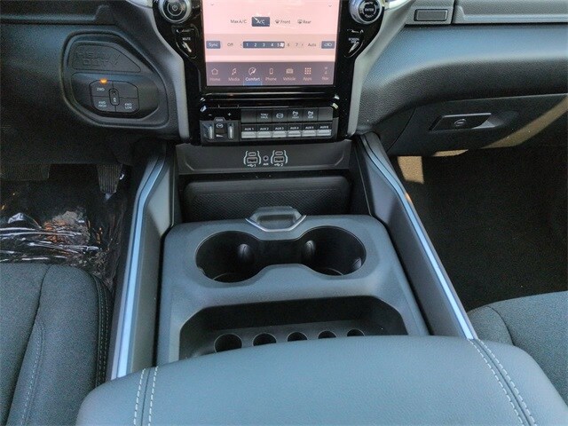 Big Horn Level 1 Plus Equipment Group (12" Touchscreen Display, 2 Way Rear Headrest Seat, 2nd Row In Floor Storage Bins, 4 Way Front Headrests, 40/20/40 Split Bench Seat, 4G LTE Wi-Fi Hot Spot, 9 Alpine Speakers w/Subwoofer, Air Conditioning ATC w/Dual Zone Control, Alexa Built-In, Anti-Spin Differential Rear Axle, Apple CarPlay, Auto Power-Folding Mirrors, Auto-Dimming Rear-View Mirror, Black Exterior Mirrors, Connected Travel & Traffic Services, Connectivity - US/Canada, Dual Glove Boxes, Emergency Vehicle Alert System (EVAS), Exterior Mirrors Courtesy Lamps, Exterior Mirrors w/Heating Element, Exterior Mirrors w/Supplemental Signals, Foam Bottle Insert (Door Trim Panel), Folding Flat Load Floor Storage, Footwell Courtesy Lamp, Forward & Reverse Utility Lights, Front Armrest w/Cupholders, Front Center Seat Cushion Storage, Front Seat Back Map Pockets, Global Telematics Box Module (TBM), Glove Box Lamp, Google Android Auto, GPS Antenna Input, GPS Navigation, HD Radio, Integrated Voice Command w/Bluetooth, LED Bed Lighting, Locking Lower Glove Box, Luxury Steering Wheel, Manual Adjust 4-Way Front Passenger Seat, Mirror Running Lights, MOPAR Deployable Bed Step, MOPAR Spray In Bedliner, Off-Road Info Pages, Power 2-Way Driver Lumbar Adjust, Power Adjust 8-Way Driver Seat, Power Adjust Mirrors, Power Adjustable Convex Aux Mirrors, Power Heated Folding Telescopic Mirrors, Power Telescoping Mirrors, Premium Cloth 40/20/40 Bench Seat, Radio: Uconnect 5 Nav w/12.0" Display, Rear 60/40 Folding Seat, Rear Dome w/On/Off Switch Lamp, Remote Start System, Remote USB Port - Charge Only, Selectable Tire Fill Alert, SiriusXM Radio Service, SiriusXM w/360L, Steering Wheel Mounted Audio Controls, Storage Tray, and Trailer Tow Pages), Cold Weather Group (Engine Block Heater and MOPAR Winter Front Grille Cover), Heated Seats & Wheel Group (Heated Front Seats and Heated Steering Wheel), Night Edition (Black Exterior Truck Badging, Black Interior Accents, Black Wheel Center Hub, Body Color Grille Surround, Gloss Black Nostrils/Mic Black Grille, Painted Front Bumper, Painted Rear Bumper, and Wheels: 20" x 8.0" Black Painted Aluminum), Quick Order Package 24Z Big Horn, Towing Technology Group (Blind Spot & Cross Path Detection, CTR Stop Lamp w/Cargo View Camera, LED Tail Lamps, Red Tail Lamp Bezels, Surround View Camera System, Trailer Reverse Guidance, and Trailer Tire Pressure Monitoring System), 4-Wheel Disc Brakes, 5th Wheel/Gooseneck Towing Prep Group, 6 Speakers, ABS brakes, Air Conditioning, Alloy wheels, AM/FM radio: SiriusXM, Apple CarPlay/Android Auto, Brake assist, Bumpers: chrome, Cloth 40/20/40 Bench Seat, Compass, Dash Pass Thru Wire Circuits, Delay-off headlights, Driver door bin, Dual front impact airbags, Dual front side impact airbags, Electronic Stability Control, Front anti-roll bar, Front Center Armrest w/Storage, Front fog lights, Front License Plate Bracket, Front reading lights, Fully automatic headlights, Heated door mirrors, I/P Mounted Auxiliary Switches, Illuminated entry, Low tire pressure warning, Manual Adjust 4-Way Driver Seat, MOPAR Front & Rear Rubber Floor Mats, Occupant sensing airbag, Outside temperature display, Overhead airbag, Overhead console, Panic alarm, ParkView Rear Back-Up Camera, Passenger door bin, Passenger vanity mirror, Power door mirrors, Power steering, Power windows, Radio data system, Radio: Uconnect 5 w/8.4" Display, Rear anti-roll bar, Rear Folding Seat, Rear seat center armrest, Rear step bumper, Rear window defroster, Remote keyless entry, Security system, Speed control, Tachometer, Tilt steering wheel, Traction control, Trip computer, Turn signal indicator mirrors, Variably intermittent wipers, Vinyl 2nd Row Seat, Price includes: $2000 - 2025 National Bonus Cash . Exp. 01/05/2026 $2000 - 2025 National Holiday Select Inventory Bonus Cash. Exp. 0
