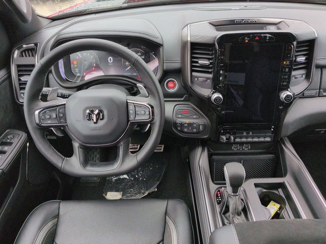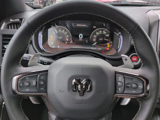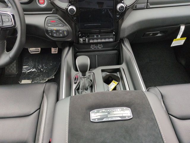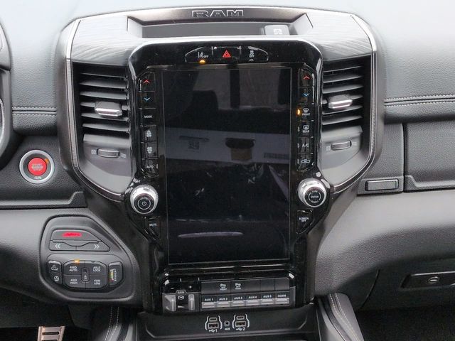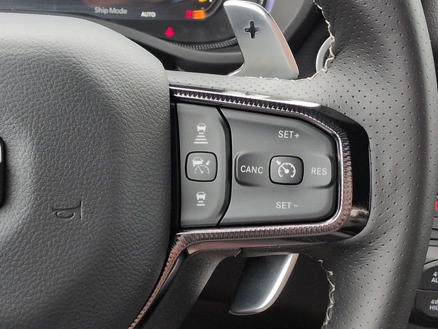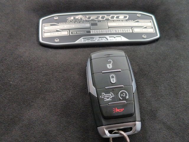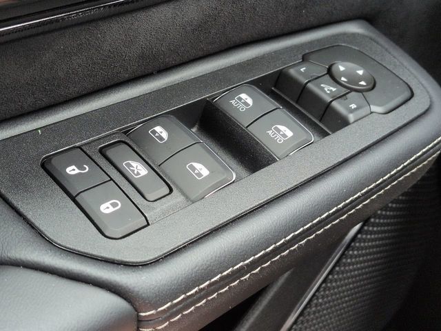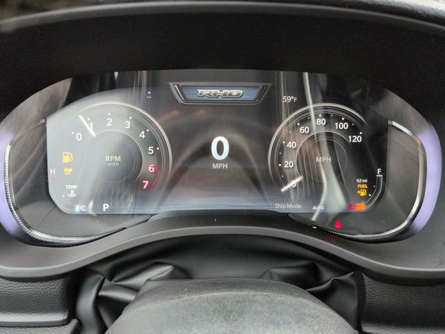 Quick Order Package 22Y RHO, 10 Speakers, 3.92 Rear Axle Ratio, 4-Wheel Disc Brakes, 4G LTE Wi-Fi Hot Spot, ABS brakes, Adaptive suspension, Adjustable pedals, Air Conditioning, Alloy wheels, AM/FM radio, Apple CarPlay/Android Auto, Auto High-beam Headlights, Auto Power-Folding Mirrors, Auto-dimming door mirrors, Auto-Dimming Exterior Driver Mirror, Auto-dimming Rear-View mirror, Automatic temperature control, Brake assist, Compass, Connected Travel and Traffic Services, Connectivity - US/Canada, Delay-off headlights, Disassociated Touchscreen Display, Driver door bin, Driver vanity mirror, Dual front impact airbags, Dual front side impact airbags, Electronic Stability Control, Exterior Mirrors Courtesy Lamps, Exterior Mirrors with Heating Element, Exterior Mirrors with Supplemental Signals, Exterior Parking Camera Rear, Flareside Box, Front anti-roll bar, Front Bucket Seats, Front Center Armrest w/Storage, Front dual zone A/C, Front fog lights, Front License Plate Bracket, Front reading lights, Front wheel independent suspension, Fully automatic headlights, Garage door transmitter, GPS Navigation, HD Radio, Heated door mirrors, Heated front seats, Heated steering wheel, Illuminated entry, Integrated Center Stack Radio, Integrated Voice Command with Bluetooth, Leather Shift Knob, Leather steering wheel, Leather Trimmed Bucket Seats, Low tire pressure warning, Navigation System, Occupant sensing airbag, Outside temperature display, Overhead airbag, Overhead console, Panic alarm, Passenger door bin, Passenger vanity mirror, Power door mirrors, Power driver seat, Power passenger seat, Power steering, Power windows, Radio data system, Radio: Uconnect 5 Navigation with 12.0" Display, Rear reading lights, Rear seat center armrest, Rear step bumper, Rear window defroster, Remote keyless entry, Security system, SiriusXM Radio Service, Speed control, Split folding rear seat, Sport steering wheel, Steering wheel mounted audio controls, Tachometer, Telescoping steering wheel, Tilt steering wheel, Traction control, Trip computer, Turn signal indicator mirrors, USB Host Flip, Variably intermittent wipers, Voltmeter, and Wheels: 18" x 9" Black Paint/Polish Aluminum.