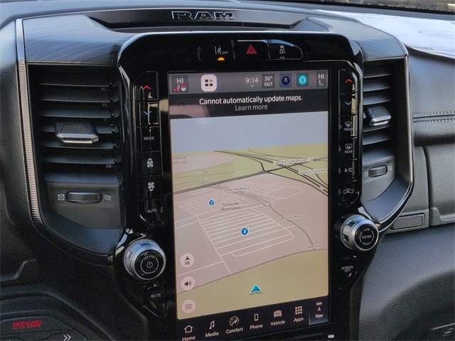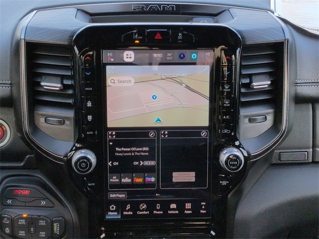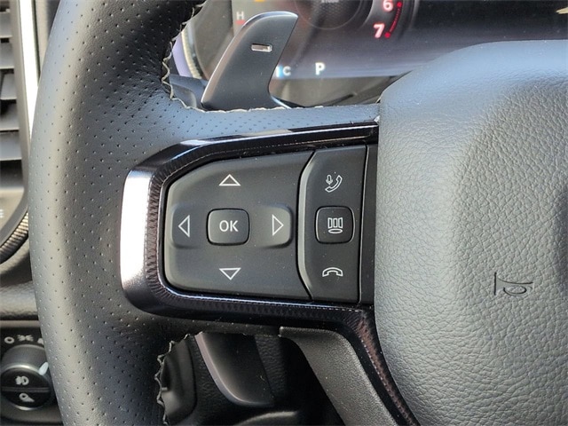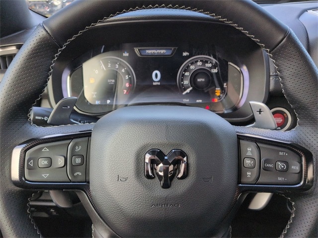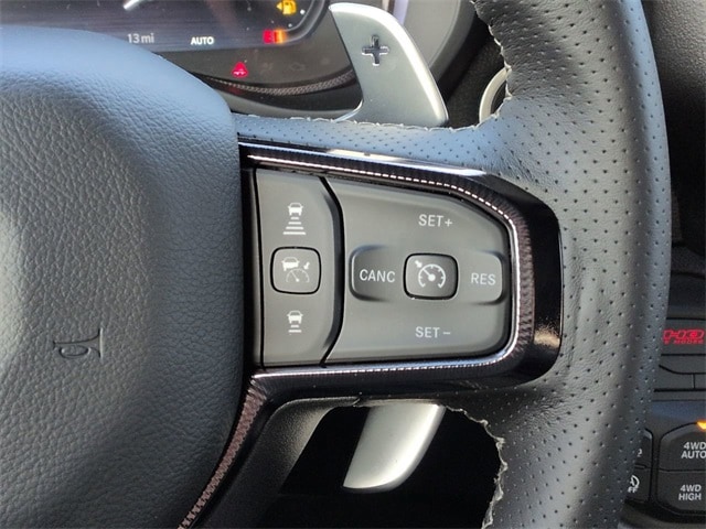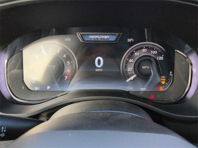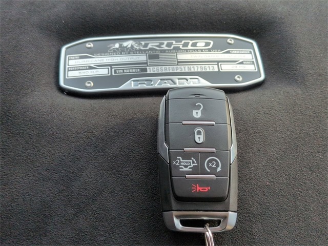 Quick Order Package 22Y RHO, 10 Speakers, 3.92 Rear Axle Ratio, 4-Wheel Disc Brakes, 4G LTE Wi-Fi Hot Spot, ABS brakes, Adaptive suspension, Adjustable pedals, Air Conditioning, Alloy wheels, AM/FM radio, Apple CarPlay/Android Auto, Auto High-beam Headlights, Auto Power-Folding Mirrors, Auto-dimming door mirrors, Auto-Dimming Exterior Driver Mirror, Auto-dimming Rear-View mirror, Automatic temperature control, Brake assist, Compass, Connected Travel and Traffic Services, Connectivity - US/Canada, Delay-off headlights, Disassociated Touchscreen Display, Driver door bin, Driver vanity mirror, Dual front impact airbags, Dual front side impact airbags, Electronic Stability Control, Exterior Mirrors Courtesy Lamps, Exterior Mirrors with Heating Element, Exterior Mirrors with Supplemental Signals, Exterior Parking Camera Rear, Flareside Box, Front anti-roll bar, Front Bucket Seats, Front Center Armrest w/Storage, Front dual zone A/C, Front fog lights, Front reading lights, Front wheel independent suspension, Fully automatic headlights, Garage door transmitter, GPS Navigation, HD Radio, Heated door mirrors, Heated front seats, Heated steering wheel, Illuminated entry, Integrated Center Stack Radio, Integrated Voice Command with Bluetooth, Leather Shift Knob, Leather steering wheel, Leather Trimmed Bucket Seats, Low tire pressure warning, Navigation System, Occupant sensing airbag, Outside temperature display, Overhead airbag, Overhead console, Panic alarm, Passenger door bin, Passenger vanity mirror, Power door mirrors, Power driver seat, Power passenger seat, Power steering, Power windows, Radio data system, Radio: Uconnect 5 Navigation with 12.0" Display, Rear reading lights, Rear seat center armrest, Rear step bumper, Rear window defroster, Remote keyless entry, Security system, SiriusXM Radio Service, Speed control, Split folding rear seat, Sport steering wheel, Steering wheel mounted audio controls, Tachometer, Telescoping steering wheel, Tilt steering wheel, Traction control, Trip computer, Turn signal indicator mirrors, USB Host Flip, Variably intermittent wipers, Voltmeter, and Wheels: 18" x 9" Black Paint/Polish Aluminum.