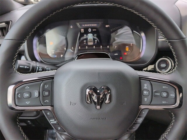 Limited Level An Equipment Group (12-Way/1-Way Trailer Connector, 14.4" Touchscreen Display, 240 Amp Alternator, 4G LTE Wi-Fi Hot Spot, Apple CarPlay, Connected Travel and Traffic Services, Connectivity - US/Canada, Disassociated Touchscreen Display, Drowsy Driver Detection, Evasive Steer Assist, Exterior 115V AC Outlet, Global Telematics Box Module, Google Android Auto, GPS Antenna Input, GPS Navigation, Hands-Free Active Driving Assist System, HD Radio, Heads-Up Display, Integrated Center Stack Radio, Integrated Voice Command with Bluetooth, Intersection Collision Assist System, LED CHMSL Lamp, Radio: Uconnect 5 Nav with 14.4" Display, RamBox Cargo Management System, SiriusXM Radio Service, SiriusXM with 360L, Smartphone as a Key Capable, Surround View Camera System, Traffic Sign Recognition, Tri-Fold Tonneau Cover, and USB Host Flip), Night Edition (Accent Color Door Handles, Accent Color Premium Power Mirrors, Accent Color Tailgate Handle, Auto Power-Folding Mirrors, Auto-Dimming Exterior Driver Mirror, Black Day Light Opening Moldings, Black Exterior Truck Badging, Black Grille Surround Texture 7 Black, Black Headlamp Bezels, Black Painted Exterior Mirrors Caps, Black Tail Lamp Bezels, Body Color Front Bumper, Body Color Rear Bumper with Step Pads, Convex Wide-Angle Exterior Mirror Insert, Dual Exhaust with Black Tips, Exterior Mirrors Courtesy Lamps, Exterior Mirrors with Heating Element, Exterior Mirrors with Memory, Exterior Mirrors with Supplemental Signals, Pirelli Brand Tires, RAM Grille Badge - Black, Sport Performance Hood, and Wheels: 22" x 9" Premium Black Aluminum), Quick Order Package 22M Limited, 19 Speakers, 3.92 Rear Axle Ratio, 4-Wheel Disc Brakes, ABS brakes, Active Noise Control System, Adjustable pedals, Air Conditioning, Alloy wheels, AM/FM radio, Apple CarPlay/Android Auto, Audio memory, Auto High-beam Headlights, Auto-dimming door mirrors, Auto-dimming Rear-View mirror, Auto-leveling suspension, Automatic temperature control, Bodyside moldings, Brake assist, Bumpers: chrome, Chrome Exterior Mirrors, Compass, Delay-off headlights, Dome Dual LED Reading Lamp, Driver door bin, Driver vanity mirror, Dual front impact airbags, Dual front side impact airbags, Dual-Pane Panoramic Sunroof, Electronic Stability Control, Exterior Parking Camera Rear, Front anti-roll bar, Front Bucket Seats, Front Center Armrest w/Storage, Front dual zone A/C, Front fog lights, Front reading lights, Front wheel independent suspension, Fully automatic headlights, Garage door transmitter, Genuine wood console insert, Genuine wood dashboard insert, Genuine wood door panel insert, Heated door mirrors, Heated front seats, Heated rear seats, Heated steering wheel, Illuminated entry, Leather steering wheel, LED Dome/Reading Lamp, Low tire pressure warning, Memory seat, Navigation System, Occupant sensing airbag, Outside temperature display, Overhead airbag, Overhead console, Panic alarm, Passenger door bin, Passenger vanity mirror, Pedal memory, Power door mirrors, Power driver seat, Power passenger seat, Power steering, Power windows, Premium Quilted Leather Bucket Seats, Radio data system, Radio: Uconnect 5 Navigation with 12.0" Display, Rain sensing wipers, Rear anti-roll bar, Rear reading lights, Rear seat center armrest, Rear step bumper, Rear window defroster, Remote keyless entry, Security system, Speed control, Split folding rear seat, Steering wheel mounted audio controls, Tachometer, Telescoping steering wheel, Tilt steering wheel, Traction control, Trip computer, Turn signal indicator mirrors, Variably intermittent wipers, Ventilated front seats, Ventilated rear seats, Voltmeter, Wheels: 20" x 9" Premium Paint/Polished, and Wheels: 22" x 9" Forged Aluminum. Price includes: $3500 - 2026 National Retail Consumer Cash . Exp. 01/05/2026