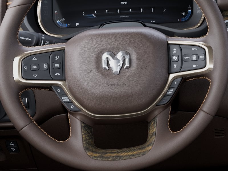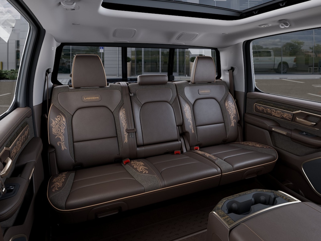 Limited Level An Equipment Group (12-Way/1-Way Trailer Connector, 14.4" Touchscreen Display, 240 Amp Alternator, 4G LTE Wi-Fi Hot Spot, Apple CarPlay, Connected Travel and Traffic Services, Connectivity - US/Canada, Disassociated Touchscreen Display, Drowsy Driver Detection, Evasive Steer Assist, Exterior 115V AC Outlet, Global Telematics Box Module, Google Android Auto, GPS Antenna Input, GPS Navigation, Hands-Free Active Driving Assist System, HD Radio, Heads-Up Display, Integrated Center Stack Radio, Integrated Voice Command with Bluetooth, Intersection Collision Assist System, LED CHMSL Lamp, Radio: Uconnect 5 Nav with 14.4" Display, RamBox Cargo Management System, SiriusXM Radio Service, SiriusXM with 360L, Smartphone as a Key Capable, Surround View Camera System, Traffic Sign Recognition, Tri-Fold Tonneau Cover, and USB Host Flip), Quick Order Package 22K Longhorn (Grille Surround 4 Chrome Texture 5 Chrome, Longhorn Badge, Longhorn Instrument Cluster Theme 3, Premium Door Trim Panel, Premium Filigree Leather Seats, and Warm Chrome Key Fob), 19 Speakers, 3.92 Rear Axle Ratio, 4-Wheel Disc Brakes, ABS brakes, Active Noise Control System, Adjustable pedals, Air Conditioning, Alloy wheels, AM/FM radio, Apple CarPlay/Android Auto, Audio memory, Auto High-beam Headlights, Auto Power-Folding Mirrors, Auto-dimming door mirrors, Auto-Dimming Exterior Driver Mirror, Auto-dimming Rear-View mirror, Auto-leveling suspension, Automatic temperature control, Bodyside moldings, Brake assist, Bumpers: chrome, Chrome Exterior Mirrors, Compass, Convex Wide-Angle Exterior Mirror Insert, Delay-off headlights, Dome Dual LED Reading Lamp, Driver door bin, Driver vanity mirror, Dual front impact airbags, Dual front side impact airbags, Dual-Pane Panoramic Sunroof, Electronic Stability Control, Exterior Mirrors Courtesy Lamps, Exterior Mirrors with Heating Element, Exterior Mirrors with Memory, Exterior Mirrors with Supplemental Signals, Exterior Parking Camera Rear, Front anti-roll bar, Front Bucket Seats, Front Center Armrest w/Storage, Front dual zone A/C, Front fog lights, Front reading lights, Front wheel independent suspension, Fully automatic headlights, Garage door transmitter, Genuine wood console insert, Genuine wood dashboard insert, Genuine wood door panel insert, harman/kardon® Speakers, Heated door mirrors, Heated front seats, Heated rear seats, Heated steering wheel, Illuminated entry, Leather steering wheel, LED Dome/Reading Lamp, Low tire pressure warning, Memory seat, Navigation System, Occupant sensing airbag, Outside temperature display, Overhead airbag, Overhead console, Panic alarm, Passenger door bin, Passenger vanity mirror, Pedal memory, Pirelli Brand Tires, Power door mirrors, Power driver seat, Power passenger seat, Power steering, Power windows, Premium Quilted Leather Bucket Seats, Radio data system, Radio: Uconnect 5 Navigation with 12.0" Display, Rain sensing wipers, Rear anti-roll bar, Rear reading lights, Rear seat center armrest, Rear step bumper, Rear window defroster, Remote keyless entry, Security system, Speed control, Split folding rear seat, Steering wheel mounted audio controls, Tachometer, Telescoping steering wheel, Tilt steering wheel, Traction control, Trip computer, Turn signal indicator mirrors, Variably intermittent wipers, Ventilated front seats, Ventilated rear seats, Voltmeter, Wheels: 20" x 9" Premium Paint/Polished, and Wheels: 22" x 9" Premium Paint/Polished. Price includes: $3500 - 2026 National Retail Bonus Cash . Exp. 04/30/2026