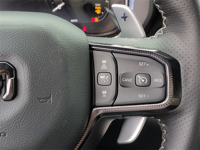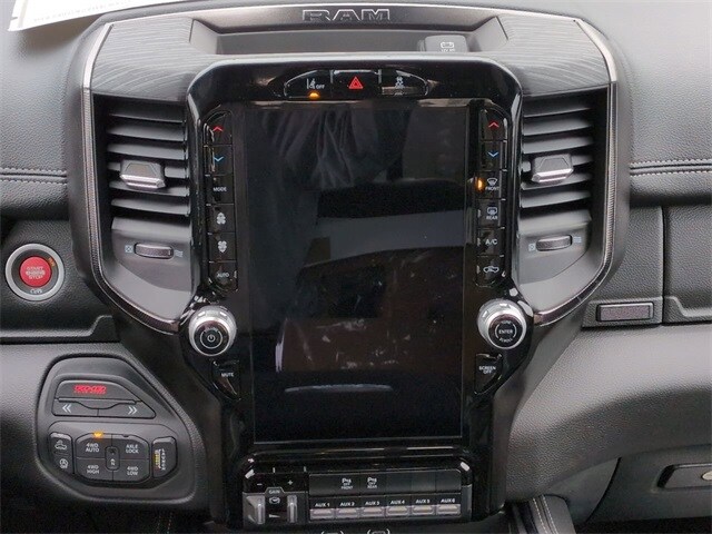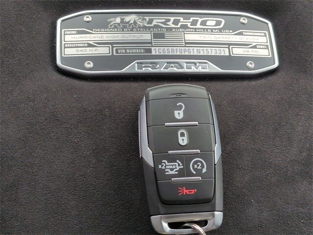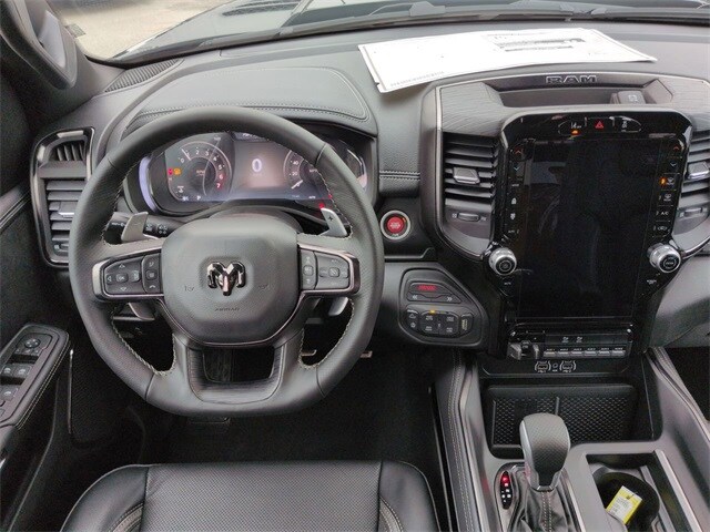 Quick Order Package 22Y RHO, 10 Speakers, 3.92 Rear Axle Ratio, 4-Wheel Disc Brakes, 4G LTE Wi-Fi Hot Spot, ABS brakes, Adaptive suspension, Adjustable pedals, Air Conditioning, Alloy wheels, AM/FM radio, Apple CarPlay/Android Auto, Auto High-beam Headlights, Auto Power-Folding Mirrors, Auto-dimming door mirrors, Auto-Dimming Exterior Driver Mirror, Auto-dimming Rear-View mirror, Automatic temperature control, Brake assist, Compass, Connected Travel and Traffic Services, Connectivity - US/Canada, Delay-off headlights, Disassociated Touchscreen Display, Driver door bin, Driver vanity mirror, Dual front impact airbags, Dual front side impact airbags, Electronic Stability Control, Exterior Mirrors Courtesy Lamps, Exterior Mirrors with Heating Element, Exterior Mirrors with Supplemental Signals, Exterior Parking Camera Rear, Flareside Box, Front anti-roll bar, Front Bucket Seats, Front Center Armrest w/Storage, Front dual zone A/C, Front fog lights, Front reading lights, Front wheel independent suspension, Fully automatic headlights, Garage door transmitter, GPS Navigation, HD Radio, Heated door mirrors, Heated front seats, Heated steering wheel, Illuminated entry, Integrated Center Stack Radio, Integrated Voice Command with Bluetooth, Leather Shift Knob, Leather steering wheel, Leather Trimmed Bucket Seats, Low tire pressure warning, Navigation System, Occupant sensing airbag, Outside temperature display, Overhead airbag, Overhead console, Panic alarm, Passenger door bin, Passenger vanity mirror, Power door mirrors, Power driver seat, Power passenger seat, Power steering, Power windows, Radio data system, Radio: Uconnect 5 Navigation with 12.0" Display, Rear reading lights, Rear seat center armrest, Rear step bumper, Rear window defroster, Remote keyless entry, Security system, SiriusXM Radio Service, Speed control, Split folding rear seat, Sport steering wheel, Steering wheel mounted audio controls, Tachometer, Telescoping steering wheel, Tilt steering wheel, Traction control, Trip computer, Turn signal indicator mirrors, USB Host Flip, Variably intermittent wipers, Voltmeter, and Wheels: 18" x 9" Black Paint/Polish Aluminum.