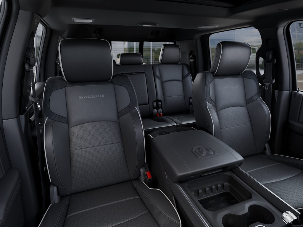 Laramie Level 2 Plus Equipment Group (#1 Seat Foam Cushion, 115V Auxiliary Rear Power Outlet, 14.4" Touchscreen Display, 17 Speaker Harman/Kardon Premium Sound, 2 Way Rear Headrest Seat, 4 Way Front Headrests, 4G LTE Wi-Fi Hot Spot, Active Lane Management System, Adaptive Steering System, Alexa Built-in, Anti-Spin Differential Rear Axle, Apple CarPlay, Auto Adjust in Reverse Exterior Mirrors, Auto Dim Exterior Mirror, Auto High Beam Headlamp Control, Auto Power-Folding Mirrors, Auto-Dimming Exterior Passenger Mirror, Bucket Seats, Center Stop Lamp with Cargo View Camera, Connected Travel and Traffic Services, Connectivity - US/Canada, Disassociated Touchscreen Display, Drowsy Driver Detection, Dual Wireless Charging Pad, Emergency Vehicle Alert System (EVAS), Exterior Mirrors Courtesy Lamps, Exterior Mirrors with Heating Element, Exterior Mirrors with Memory, Exterior Mirrors with Supplemental Signals, Foam Bottle Insert (door Trim Panel), For Details, Visit DriveUconnect.com, For More Info, Call 800-643-2112, Forward and Reverse Utility Lights, Front Seat Back Map Pockets, Full Length Upgraded Floor Console, Global Telematics Box Module, Google Android Auto, GPS Antenna Input, GPS Navigation, HD Radio, Heated Front Seats, Heated Steering Wheel, High Back Seats, Integrated Voice Command with Bluetooth, Leather Trimmed Bucket Seats, LED Bed Lighting, Mirror Running Lights, MOPAR Deployable Bed Step, MOPAR Spray in Bedliner, Off-Road Information Pages, Power 2-Way Driver Lumbar Adjust, Power 2-Way Passenger Lumbar Adjust, Power Adjust 8-Way Driver Seat, Power Adjust 8-Way Front Passenger Seat, Power Adjust Mirrors, Power Adjustable Convex Aux Mirrors, Power Adjustable Pedals with Memory, Power Deployable Running Boards, Power Heated Fold Telescope Mirrors w/Memory, Power Telescoping Mirrors, Radio: Uconnect 5 Nav with 14.4" Display, Rain Sensitive Windshield Wipers, Rear 60/40 Folding Seat, Remote Tailgate Release, Selectable Tire Fill Alert, SiriusXM Radio Service, SiriusXM with 360L, Traffic Sign Recognition, and Trailer Tow Pages), Night Edition (Black Exterior Truck Badging, Black Wheel Center Hub, Body Color Grille Surround, Gloss Black Grille Billets/Accents, Sport Performance Hood, and Wheels: 20" x 8" Black Painted Aluminum), Quick Order Package 24H Laramie, 10 Speakers, 3.42 Axle Ratio, 4-Wheel Disc Brakes, 5th Wheel/Gooseneck Towing Prep Group, ABS brakes, Air Conditioning, Alloy wheels, AM/FM radio: SiriusXM with 360L, Apple CarPlay/Android Auto, Auto-dimming Rear-View mirror, Automatic temperature control, Brake assist, Bumpers: body-color, Chrome Exterior Mirrors, Clearance Lamps, Compass, Delay-off headlights, Driver door bin, Driver vanity mirror, Dual front impact airbags, Dual front side impact airbags, Electronic Stability Control, Front anti-roll bar, Front Center Armrest w/Storage, Front dual zone A/C, Front fog lights, Front reading lights, Fully automatic headlights, Garage door transmitter, Heated door mirrors, Heated front seats, Heated steering wheel, Illuminated entry, Leather Trim 40/20/40 Bench Seat, Low tire pressure warning, Navigation System, Occupant sensing airbag, Outside temperature display, Overhead airbag, Overhead console, Panic alarm, ParkView Rear Back-Up Camera, Passenger door bin, Passenger vanity mirror, Power door mirrors, Power driver seat, Power passenger seat, Power steering, Power Sunroof, Power windows, Radio data system, Radio: Uconnect 5 Navigation with 12.0" Display, Rear anti-roll bar, Rear reading lights, Rear seat center armrest, Rear step bumper, Rear window defroster, Remote keyless entry, Security system, Speed control, Split folding rear seat, Steering wheel mounted audio controls, Tachometer, Tilt steering wheel, Traction control, Trip computer, Turn signal indicator mi Price includes: $1000 - 2026 National Bonus Cash . Exp. 0