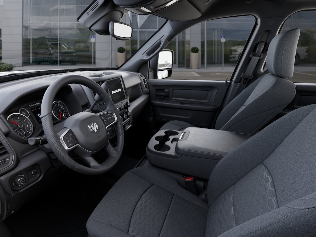 Quick Order Package 24C Black Express (2 Way Rear Headrest Seat, 4 Way Front Headrests, 40/20/40 Split Bench Seat, Auto Power-Folding Mirrors, Black Exterior Mirrors, Black Wheel Center Hub, Body Color Grille-Surround, Carpet Floor Covering, Cloth 40/20/40 Bench Seat, Exterior Mirrors Courtesy Lamps, Exterior Mirrors with Heating Element, Exterior Mirrors with Supplemental Signals, Forward and Reverse Utility Lights, Front and Rear Floor Mats, Front Armrest with Cupholders, Manual Adjust 4-Way Driver Seat, Manual Adjust 4-Way Front Passenger Seat, Mirror Running Lights, Mopar Black Tubular Side Steps, Painted Front Bumper, Painted Rear Bumper, ParkSense Front/Rear Park Assist System, Power Adjust Mirrors, Power Heated Folding Telescopic Mirrors, Power Telescoping Mirrors, Power-Adjustable Convex Aux Mirrors, Rear Folding Seat, Remote USB Port - Charge Only, Sport Performance Hood, Storage Tray, and Wheels: 20" x 8.0" Black Painted Aluminum), 4-Wheel Disc Brakes, 4G LTE Wi-Fi Hot Spot, 50 Gallon Fuel Tank, 5th Wheel/Gooseneck Towing Prep Group, 6 Speakers, ABS brakes, Air Conditioning, AM/FM radio: SiriusXM, Apple CarPlay, Apple CarPlay/Android Auto, Brake assist, Compass, Connectivity - US/Canada, Delay-off headlights, Driver door bin, Dual front impact airbags, Dual front side impact airbags, Electronic Stability Control, For Details, Visit DriveUconnect.com, For More Info, Call 800-643-2112, Front anti-roll bar, Front Center Armrest w/Storage, Front fog lights, Front License Plate Bracket, Front reading lights, Fully automatic headlights, Global Telematics Box Module, Google Android Auto, GPS Antenna Input, Illuminated entry, Integrated Voice Command with Bluetooth, Low tire pressure warning, Manual Folding Exterior Mirrors, Manual Telescoping Mirrors, MOPAR Front and Rear Rubber Floor Mats, Occupant sensing airbag, Outside temperature display, Overhead airbag, Overhead console, Panic alarm, ParkView Rear Back-Up Camera, Passenger door bin, Passenger vanity mirror, Power steering, Power windows, Radio data system, Radio: Uconnect 5 with 8.4" Display, Rear anti-roll bar, Rear step bumper, Rear window defroster, Remote keyless entry, Selectable Tire Fill Alert, SiriusXM Radio Service, Speed control, Tachometer, Tilt steering wheel, Traction control, Variably intermittent wipers, Voltmeter, and Wheels: 17" x 7.5" Black Steel StyleD. Price includes: $1000 - 2026 National Bonus Cash . Exp. 03/02/2026