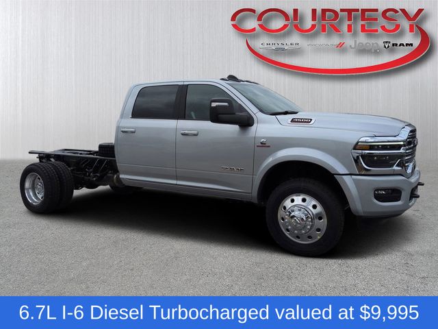 Laramie Trim Group (#1 Seat Foam Cushion, 115V Auxiliary Power Outlet, 115V Auxiliary Rear Power Outlet, 12.0" Touchscreen Display, 17 Speaker Harman/Kardon Premium Sound, 2 Way Rear Headrest Seat, 2-Door Passive Entry, Front Door Locks, 4 Way Front Headrests, 400W Inverter, 4G LTE Wi-Fi Hot Spot, Air Conditioning ATC with Dual Zone Control, Alexa Built-in, Apple CarPlay, Auto High Beam Headlamp Control, Bi-Function LED Projector Headlamps, Body Color Door Handles, Body Color Fender Flares, Bucket Seats, Center Hub, CHMSL Lamp with Camera, Chrome Billets/Accents Grille, Cluster 12" TFT Color Display, Connected Travel and Traffic Services, Connectivity - US/Canada, Courtesy Lamps, Digital Rearview Mirror, Disassociated Touchscreen Display, Dual Glove Boxes, Dual Wireless Charging Pad, Foam Bottle Insert (door Trim Panel), Folding Flat Load Floor Storage, For Details, Visit DriveUconnect.com, For More Info, Call 800-643-2112, Front Door Accent Lighting, Front Seat Back Map Pockets, Full Length Upgraded Floor Console, Global Telematics Box Module, Glove Box Lamp, Google Android Auto, GPS Antenna Input, GPS Navigation, HD Radio, Heated Front Seats, Heated Second Row Seats, Heated Steering Wheel, High Back Seats, Highline Door Trim Panel, Integrated Voice Command with Bluetooth, Leather Trimmed Bucket Seats, LED Daytime Running Headlamps, LED Dome Lamp with on/Off Switch, LED Interior Lighting, Locking Lower Glove Box, Luxury Steering Wheel, Media Hub with 2 Charge Only USBs, Off-Road Info Pages, Overhead LED Lamps, Painted Front Bumper, Painted I/P Bezels with Premium Film, ParkSense Front/Rear Park Assist System, Power 2-Way Driver Lumbar Adjust, Power 2-Way Passenger Lumbar Adjust, Power Adjust 8-Way Driver Seat, Power Adjust 8-Way Front Passenger Seat, Premium Overhead Console, Radio: Uconnect 5 Navigation with 12.0" Display, Rain Sensitive Windshield Wipers, Rear 60/40 Folding Seat, Rear Door Accent Lighting, Rear Power Sliding Window, Rear Window Defroster, Remote Start System, SiriusXM Radio Service, SiriusXM with 360L, Steering Wheel Mounted Audio Controls, Sun Visors with Illuminated Vanity Mirrors, Temperature and Compass Gauge, Trailer Tow Pages, Universal Garage Door Opener, Ventilated Front Seats, and Wheels: 19.5" x 6.0" Forged Aluminum Polished), Quick Order Package 25Z Big Horn (19.5" x 6.0" Steel Wheels, 40/20/40 Split Bench Seat, Acoustic Front Door Glass, Black Exterior Mirrors, Black-Out Tape, Body Insulation, Bright Front Bumper, Chrome Grille Surround, Cloth 40/20/40 Bench Seat, Exterior Mirrors Courtesy Lamps, Exterior Mirrors with Heating Element, Exterior Mirrors with Supplemental Signals, Front Armrest with Cupholders, Manual Adjust 4-Way Driver Seat, Manual Adjust 4-Way Front Passenger Seat, Manual Folding Exterior Mirrors, Manual Telescoping Mirrors, Matte Black Mesh Grille with Chrome, Mirror Power Heat Fold Telescope Black, Mirror Running Lights, Painted I/P Bezels with Hydrographics, Passenger Sun Visor with Illuminated Mirror, Power Adjust Mirrors, Power-Adjustable Convex Aux Mirrors, Premium Vinyl Door Trim with Map Pocket, RAM Door Badges, Rear Folding Seat, Remote USB Port - Charge Only, Satin Chrome Key Fob, Storage Tray, Tinted Acoustic Windshield Glass, Trailer Brake Control, Trailer Light Check, and Traveler/Mini Trip Computer), 4-Wheel Disc Brakes, 4.44 Axle Ratio, 6 Speakers, ABS brakes, Air Conditioning, AM/FM radio: SiriusXM, Apple CarPlay/Android Auto, Compass, Delay-off headlights, Driver door bin, Dual front impact airbags, Dual rear wheels, Electronic Stability Control, Emergency communication system: RAM Connect, Front anti-roll bar, Front Center Armrest w/Storage, Front fog lights, Front License Plate Bracket, Front reading lights, Fully automatic headlights Price includes: $2500 - 2026 National Bonus Cash . Exp. 0