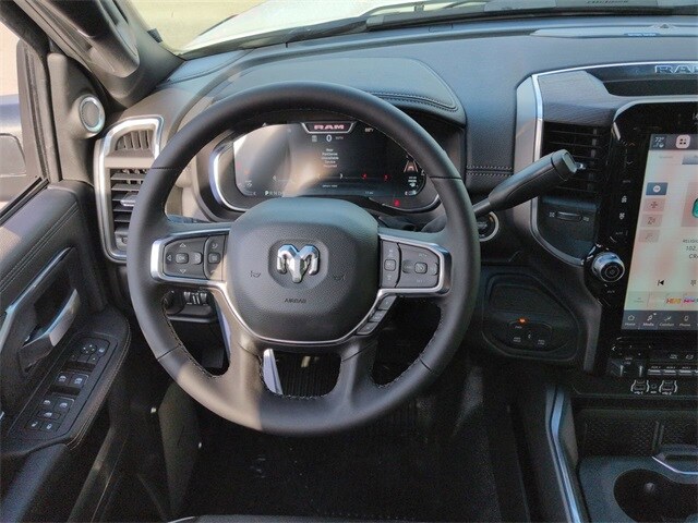 Cold Weather Group (Engine Block Heater and MOPAR Winter Front Grille Cover), Laramie Trim Group (#1 Seat Foam Cushion, 115V Auxiliary Power Outlet, 115V Auxiliary Rear Power Outlet, 12.0" Touchscreen Display, 2 Way Rear Headrest Seat, 2-Door Passive Entry, Front Door Locks, 4 Way Front Headrests, 400W Inverter, 4G LTE Wi-Fi Hot Spot, Apple CarPlay, Auto High Beam Headlamp Control, Bi-Function LED Projector Headlamps, Body Color Door Handles, Body Color Fender Flares, Bucket Seats, Center Hub, Chrome Billets/Accents Grille, Cluster 12" TFT Color Display, Connectivity - US/Canada, Courtesy Lamps, Digital Rearview Mirror, Disassociated Touchscreen Display, Dual Glove Boxes, Dual Wireless Charging Pad, Folding Flat Load Floor Storage, For Details, Visit DriveUconnect.com, For More Info, Call 800-643-2112, Front Door Accent Lighting, Front Seat Back Map Pockets, Full Length Upgraded Floor Console, Glove Box Lamp, Google Android Auto, GPS Antenna Input, GPS Navigation, HD Radio, Heated Front Seats, Heated Second Row Seats, Heated Steering Wheel, High Back Seats, Highline Door Trim Panel, Leather Trimmed Bucket Seats, LED Daytime Running Headlamps, LED Interior Lighting, Locking Lower Glove Box, Luxury Steering Wheel, Off-Road Info Pages, Overhead LED Lamps, Painted Front Bumper, ParkSense Front/Rear Park Assist System, Power 2-Way Driver Lumbar Adjust, Power 2-Way Passenger Lumbar Adjust, Power Adjust 8-Way Driver Seat, Power Adjust 8-Way Front Passenger Seat, Premium Overhead Console, Rain Sensitive Windshield Wipers, Rear 60/40 Folding Seat, Rear Door Accent Lighting, Rear Power Sliding Window, Rear Window Defroster, Remote Start System, SiriusXM Radio Service, Steering Wheel Mounted Audio Controls, Trailer Tow Pages, Universal Garage Door Opener, Ventilated Front Seats, and Wheels: 19.5" x 6.0" Forged Aluminum Polished), Quick Order Package 25Z Big Horn (19.5" x 6.0" Steel Wheels, 40/20/40 Split Bench Seat, Acoustic Front Door Glass, Black Exterior Mirrors, Black-Out Tape, Body Insulation, Bright Front Bumper, Chrome Grille Surround, Cloth 40/20/40 Bench Seat, Exterior Mirrors Courtesy Lamps, Manual Adjust 4-Way Driver Seat, Manual Adjust 4-Way Front Passenger Seat, Manual Folding Exterior Mirrors, Mirror Power Heat Fold Telescope Black, Mirror Running Lights, Power Adjust Mirrors, Power-Adjustable Convex Aux Mirrors, RAM Door Badges, Rear Folding Seat, Remote USB Port - Charge Only, Satin Chrome Key Fob, Storage Tray, Tinted Acoustic Windshield Glass, Trailer Brake Control, Trailer Light Check, and Traveler/Mini Trip Computer), Safety Group (Adaptive Steering System, Drowsy Driver Detection, Lane Keep Assist, and Security Alarm), 4-Wheel Disc Brakes, 4.44 Axle Ratio, 6 Speakers, ABS brakes, Air Conditioning, AM/FM radio: SiriusXM, Apple CarPlay/Android Auto, Compass, Delay-off headlights, Driver door bin, Dual front impact airbags, Dual rear wheels, Electronic Stability Control, Emergency communication system: RAM Connect, Front anti-roll bar, Front Center Armrest w/Storage, Front fog lights, Front License Plate Bracket, Front reading lights, Fully automatic headlights, Illuminated entry, Occupant sensing airbag, Outside temperature display, Overhead console, Panic alarm, ParkView Rear Back Up Camera, Passenger door bin, Passenger vanity mirror, Power steering, Power Take-Off Right/Left, Power windows, Radio data system, Rear anti-roll bar, Remote keyless entry, Speed control, Tachometer, Tilt steering wheel, Traction control, Variably intermittent wipers, Voltmeter, and Wheels: 19.5" x 6.0" Black Painted SteeL.
