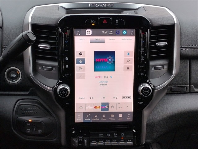 Laramie Trim Group (#1 Seat Foam Cushion, 115V Auxiliary Power Outlet, 115V Auxiliary Rear Power Outlet, 12.0" Touchscreen Display, 17 Speaker Harman/Kardon Premium Sound, 2 Way Rear Headrest Seat, 2-Door Passive Entry, Front Door Locks, 4 Way Front Headrests, 400W Inverter, 4G LTE Wi-Fi Hot Spot, Air Conditioning ATC with Dual Zone Control, Alexa Built-in, Apple CarPlay, Auto High Beam Headlamp Control, Bi-Function LED Projector Headlamps, Body Color Door Handles, Body Color Fender Flares, Bucket Seats, Center Hub, CHMSL Lamp with Camera, Chrome Billets/Accents Grille, Cluster 12" TFT Color Display, Connected Travel and Traffic Services, Connectivity - US/Canada, Courtesy Lamps, Digital Rearview Mirror, Disassociated Touchscreen Display, Dual Glove Boxes, Dual Wireless Charging Pad, Foam Bottle Insert (door Trim Panel), Folding Flat Load Floor Storage, For Details, Visit DriveUconnect.com, For More Info, Call 800-643-2112, Front Door Accent Lighting, Front Seat Back Map Pockets, Full Length Upgraded Floor Console, Global Telematics Box Module, Glove Box Lamp, Google Android Auto, GPS Antenna Input, GPS Navigation, HD Radio, Heated 2nd Row Seats, Heated Front Seats, Heated Steering Wheel, High Back Seats, Highline Door Trim Panel, Integrated Voice Command with Bluetooth, Leather Trimmed Bucket Seats, LED Daytime Running Headlamps, LED Dome Lamp with on/Off Switch, LED Interior Lighting, Locking Lower Glove Box, Luxury Steering Wheel, Media Hub with 2 Charge Only USBs, Off-Road Info Pages, Overhead LED Lamps, Painted Front Bumper, Painted I/P Bezels with Premium Film, ParkSense Front/Rear Park Assist System, Power 2-Way Driver Lumbar Adjust, Power 2-Way Passenger Lumbar Adjust, Power 8-Way Adjustable Driver Seat, Power 8-Way Adjustable Front Passenger Seat, Power Rear Sliding Window, Premium Overhead Console, Radio: Uconnect 5 Navigation with 12.0" Display, Rain Sensitive Windshield Wipers, Rear 60/40 Folding Seat, Rear Door Accent Lighting, Rear Window Defroster, Remote Start System, SiriusXM Radio Service, SiriusXM with 360L, Steering Wheel Mounted Audio Controls, Sun Visors with Illuminated Vanity Mirrors, Temperature and Compass Gauge, Trailer Tow Pages, Universal Garage Door Opener, Ventilated Front Seats, and Wheels: 19.5" x 6.0" Forged Aluminum Polished), Max Tow Package (Trailer Brake Control and Trailer Light Check), Quick Order Package 25Z Big Horn (19.5" x 6.0" Steel Wheels, 40/20/40 Split Bench Seat, Acoustic Front Door Glass, Black Exterior Mirrors, Black Power Heated Fold Telescope Mirrors, Black-Out Tape, Body Insulation, Bright Front Bumper, Chrome Grille Surround, Cloth 40/20/40 Bench Seat, Exterior Mirrors Courtesy Lamps, Exterior Mirrors with Heating Element, Exterior Mirrors with Supplemental Signals, Front Armrest with Cupholders, Manual Adjust 4-Way Driver Seat, Manual Adjust 4-Way Front Passenger Seat, Manual Folding Exterior Mirrors, Manuarl Telescoping Mirrors, Matte Black Mesh with Chrome Grille, Mirror Running Lights, Painted I/P Bezels with Hydrographics, Passenger Sun Visor with Illuminated Mirror, Power Adjust Mirrors, Power-Adjustable Convex Aux Mirrors, Premium Vinyl Door Trim with Map Pocket, RAM Door Badges, Rear Folding Seat, Remote USB Port - Charge Only, Satin Chrome Key Fob, Storage Tray, Tinted Acoustic Windshield Glass, and Traveler/Mini Trip Computer), Safety Group (Adaptive Steering System, Drowsy Driver Detection, Lane Keep Assist, and Security Alarm), 4-Wheel Disc Brakes, 4.44 Axle Ratio, 6 Speakers, ABS brakes, Air Conditioning, AM/FM radio: SiriusXM, Apple CarPlay/Android Auto, Compass, Delay-off headlights, Driver door bin, Dual front impact airbags, Dual rear wheels, Electronic Stability Control, Emergency communication system: RAM Connect, Front anti-rol Price includes: $2500 - 2026 National Bonus Cash . Exp. 0