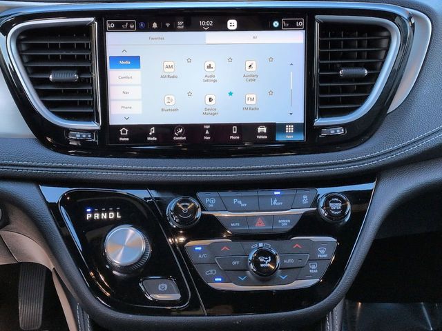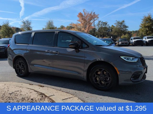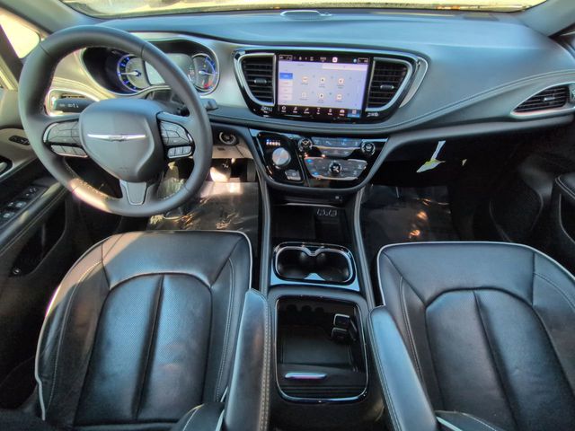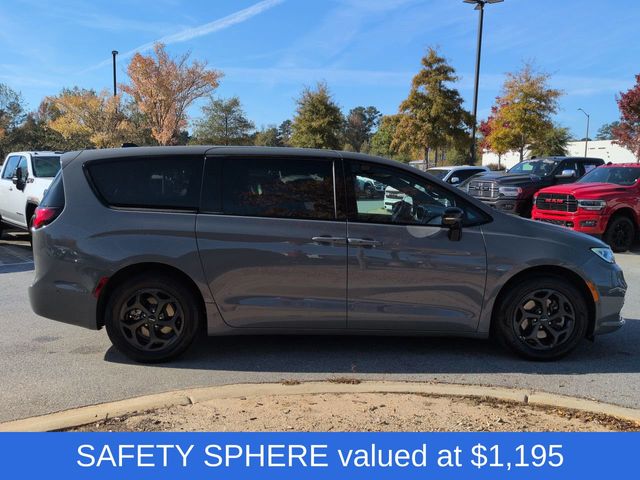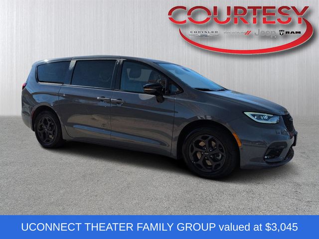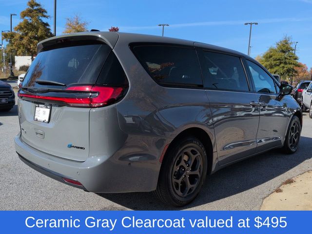 This 2023 Chrysler Pacifica Hybrid Limited in Ceramic Gray Clearcoat features: 4D Passenger Van, 3.6L V6, CVT, FWD, 10.1" Portriat Touchscreen, 115V Auxiliary Power Outlet, 13 Speakers, 20 harman/kardon Speakers, 2nd & 3rd Row Window Shades, 3-Channel Video Remote Control, 360 Surround View Camera System, 360-Degree Camera, 3rd Row Seating, 3rd row seats: split-bench, 4-Wheel Disc Brakes, 4G WiFi Hotspot Telematics, 760 Watt Amplifier, ABS brakes, Amazon Fire TV Built-In, Anodized Ink Badging, Apple CarPlay/Android Auto, Audio memory, Auto-Dimming Rear-View Mirror, Auto-dimming Rear-View mirror, Automatic temperature control, Backup Camera, Black Day Light Opening Moldings, Blind Spot Monitoring, Body Color Door Handles, Brake assist, Cold Weather Package, Delay-off headlights, Driver's Seat Mounted Armrest, DVD Entertainment Package, Electronic Stability Control, Emergency communication system: Uconnect Access, Exterior Parking Camera Rear, FamCAM Interior Camera, Four wheel independent suspension, Front dual zone A/C, Front Fascia Air Deflectors, Front fog lights, Front Pedestrian Braking, Full Speed Auto Collision Warning Plus, Fully automatic headlights, Garage door transmitter, Gloss Black Exterior Mirrors, Hands Free Sliding Doors, Heated door mirrors, Heated front seats, Heated steering wheel, Heavy Duty Suspension, High Definition Multimedia Interface, Illuminated entry, Integrated Active Noise Cancellation, KeySense, Lane Departure Warning, Leather Seats, Limited Package, Low tire pressure warning, Memory Package, Memory seat, Multi Zone Climate Control, Multimedia Package, Nappa Leather Bucket Seats w/S Logo, Navigation System, Outside temperature display, Overhead console, Panic alarm, Panoramic Sunroof/Moonroof, Parallel & Perpendicular Park Assist w/Stop, Parallel and Perpendicular Parkâ"Assist with Stop, Parking Sensors, ParkSense Front/Rear Park Assist w/Stop, Passenger seat mounted armrest, Piano Black Interior Accents, Power door mirrors, Power Liftgate, Power Mirror Package, Power moonroof, Power Package, Power Sliding Doors, Preferred Equipment Package, Premium Audio Package, Premium Fascia Upper/Lower Grille w/Black Surround, Premium Rear Fascia Black, Premium Sound Package, Quick Order Package 2EP, Radio data system, Radio: Uconnect 5 Nav w/10.1" Display, Rain sensing wipers, Rear air conditioning, Rear Climate Package, Rear Cross Traffic Alert, Rear window wiper, Reclining 3rd row seat, Remote keyless entry, Reverse Brake Assist, Reverse Sensing, S Appearance Package, S Badge, Safety Package, Safety Sphere, Seatback Video Screens, Security system, Split folding rear seat, Spoiler, Steering wheel mounted audio controls, Telescoping steering wheel, Tilt steering wheel, Traction control, Trip computer, Turn signal indicator mirrors, Uconnect Theater Family Group, Ventilated front seats, Video USB Port, Wheels: 18" x 7.5" S-Model Aluminum Design 3, Wireless Charging Pad.