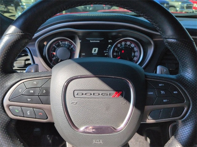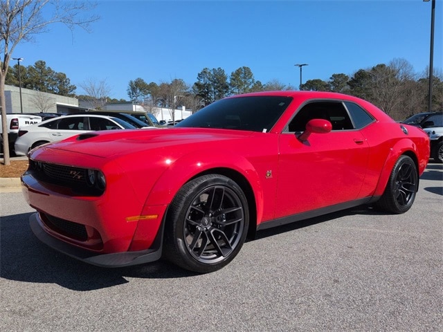 This 2021 Dodge Challenger R/T Scat Pack Widebody in Torred Clearcoat features: 2D Coupe, SRT HEMI 6.4L V8 MDS, 8-Speed Automatic, RWD, 3.09 Rear Axle Ratio, 4-Wheel Disc Brakes, 4G WiFi Hotspot Telematics, ABS brakes, Active Exhaust, Adaptive Damping Suspension, Adaptive Suspension, AM/FM radio: SiriusXM, Android Auto, Apple Carplay, Apple CarPlay/Android Auto, Auto-dimming Rear-View mirror, Automatic temperature control, Backup Camera, Bi Xenon Headlamp Package, Blind Spot & Cross Path Detection, Blind Spot Monitoring, Bluetooth w/ Audio Streaming, Brake assist, Brembo 6-Pot Fixed Front Caliper Brakes, Brembo Brakes w/ Performance Lingings, Cold Weather Package, Compass, Delay-off headlights, Door Trim Panel w/Ambient Lighting, Driver Convenience Group, Electronic Stability Control, Emergency communication system: SiriusXM Guardian, Flat-Bottom Steering Wheel, Four wheel independent suspension, Front Center Armrest, Front dual zone A/C, Front fog lights, Fully automatic headlights, Garage door transmitter, Google Android Auto, Heated door mirrors, Heated front seats, Heated Steering Wheel, Heated steering wheel, High-Intensity Discharge Headlamps, Illuminated entry, Integrated Center Stack Radio, Integrated Voice Command w/Bluetooth, Leather Seats, Leather Shift Knob, Low tire pressure warning, Media Hub (2 USB, AUX), Multimedia Package, Outside temperature display, Overhead console, Panic alarm, Parking Sensors, ParkView Rear Back-Up Camera, Performance Handling Package, Performance Package, Performance Shift Indicator, Plus Package, Power door mirrors, Power driver seat, Power Mirror Package, Power Multi-Function Foldaway Mirrors, Power Package, Power steering, Power Tilt/Telescope Steering Column, Power windows, Premium-Stitched Dash Panel, Push Button Start, Quick Order Package 24N R/T Scat Pack Widebody, Radio data system, Radio: Uconnect 4C w/8.4" Display, Radio/Driver Seat/Mirrors Memory, Rear Cross Traffic Alert, Rear seat center armrest, Remote keyless entry, Remote Start, Reverse Brake Assist, Reverse Sensing, Safety Package, Scat Pack Logo Houndstooth Seat, Security system, Shark Fin Antenna, SiriusXM Satellite Radio, Speed control, Speed-sensing steering, Split folding rear seat, Spoiler, Sport steering wheel, Steering wheel mounted audio controls, Suspension Package, Telescoping steering wheel, Tilt steering wheel, Traction control, Trip computer, USB Host Flip, Variably intermittent wipers, Wheels: 20" x 9" Lo Gloss Granite Crystal, Widebody Competition Suspension, Widebody Competition Suspension, Widebody Fender Flares.