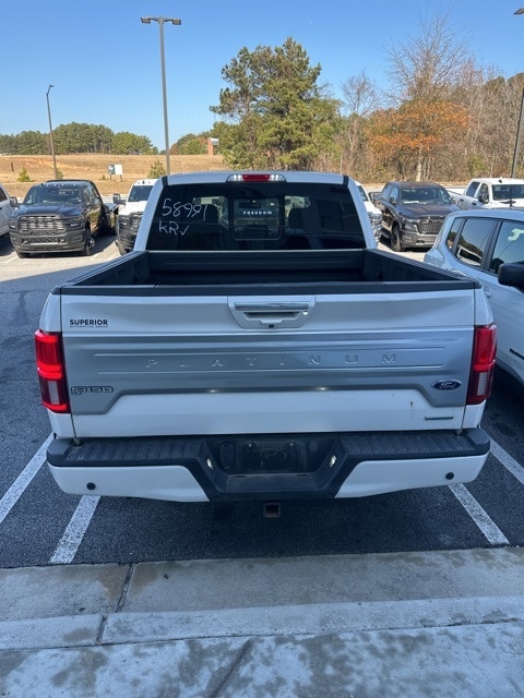 This 2019 Ford F-150 Platinum in White Platinum features: 4D SuperCrew, 3.5L V6 EcoBoost, 10-Speed Automatic, 4WD, 10 Speakers, 20" Polished Aluminum Wheels, 360-Degree Camera, 4-Wheel Disc Brakes, 4G WiFi Hotspot Telematics, 8" Color Touchscreen, ABS brakes, Active Park Assist, Adaptive Cruise Control, Adaptive Cruise Control, AM/FM radio: SiriusXM, AppLink/Apple CarPlay and Android Auto, Auto Emergency Braking, Auto High-beam Headlights, Auto tilt-away steering wheel, Auto-dimming door mirrors, Auto-dimming Rear-View mirror, Automatic temperature control, Backup Camera, Black Unique Multi-Contour Leather Bucket Seats, Blind Spot Monitoring, BLIS w/ Cross Traffic Alert, Bluetooth w/ Audio Streaming, Brake assist, Class IV Trailer Hitch Receiver, Compass, Delay-off headlights, Electronic Locking w/3.55 Axle Ratio, Electronic Stability Control, Emergency communication system: SYNC 3 911 Assist, Engine Oil Cooler, Equipment Group 701A Luxury, Extended Range 36 Gallon Fuel Tank, Exterior Parking Camera Rear, Front Center Armrest, Front dual zone A/C, Front fog lights, Front reading lights, Front wheel independent suspension, Fully automatic headlights, Garage door transmitter, Genuine wood door panel insert, GVWR: 7,050 lbs Payload Package, Heated door mirrors, Heated front seats, Heated rear seats, Heated steering wheel, Illuminated entry, Integrated Trailer Brake Controller, Lane-Keeping System, Leather Seats, LED Foglights, Low tire pressure warning, Luxury Package, Max Trailer Tow Package, Memory Package, Memory seat, Multimedia Package, Navigation System, Outside temperature display, Overhead console, Panic alarm, Panoramic Sunroof/Moonroof, Parking Sensors, Pedal memory, Power door mirrors, Power Mirror Package, Power Package, Power passenger seat, Power Running Boards, Power Sliding Rear Window, Pre Collision Assist w/ AEB, Pro Trailer Backup Assist, Pro Trailer Backup Assist, Push Button Start, Radio data system, Radio: B&O Sound System by Bang & Olufsen, Rain sensing wipers, Rear Parking Sensors, Rear seat center armrest, Rear step bumper, Remote keyless entry, Remote Start, Reverse Brake Assist, Reverse Sensing, Security system, SiriusXM Radio, Speed control, Speed-sensing steering, Split folding rear seat, Steering wheel memory, Steering wheel mounted audio controls, SYNC 3, Tailgate Step w/Tailgate Lift Assist, Technology Package, Telescoping steering wheel, Tilt steering wheel, Traction control, Tray Style Floor Liner, Trip computer, Turn signal indicator mirrors, Twin Panel Moonroof, Upgraded Front Stabilizer Bar, Ventilated front seats, Voice-Activated Touchscreen Navigation.