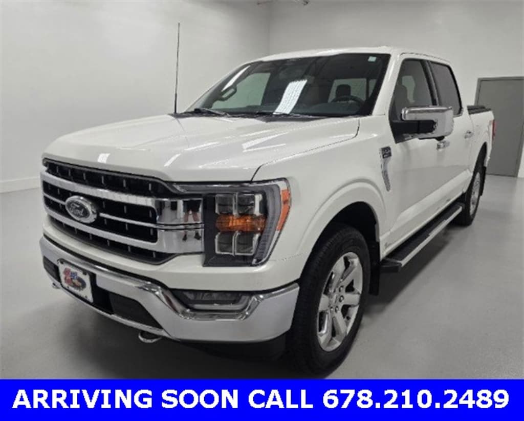 This 2022 Ford F-150 Lariat in Star White Metallic Tri-Coat features: 4D SuperCrew, 3.5L V6 EcoBoost, 10-Speed Automatic, 4WD, 12" LCD Productivity Touchscreen, 360 Degree Camera, 360-Degree Camera, 4-Wheel Disc Brakes, 4G WiFi Hotspot Telematics, 6" Bright Polished Running Board, ABS brakes, Adjustable pedals, Auto Emergency Braking, Auto High-beam Headlights, Auto Start-Stop Removal, Auto-dimming door mirrors, Auto-dimming Rear-View mirror, Automatic temperature control, Backup Camera, Blind Spot Monitoring, BLIS w/ Cross Traffic Alert, Bluetooth w/ Audio Streaming, Brake assist, Chrome 2-Bar Grille w/4 Minor Bars, Chrome Door & Tailgate Handles w/Body-Color Bezel, Chrome Single-Tip Exhaust, Chrome Skull Caps on Exterior Mirrors, Class IV Trailer Hitch Receiver, Compass, Connected Navigation & SiriusXM w/360L Removal, Delay-off headlights, Electronic Locking w/3.55 Axle Ratio, Electronic Stability Control, Emergency communication system: SYNC 4 911 Assist, Equipment Group 501A Mid, Extended Range 36 Gallon Fuel Tank, Exterior Parking Camera Rear, Front Center Armrest w/Storage, Front dual zone A/C, Front fog lights, Front reading lights, Front wheel independent suspension, Fully automatic headlights, Heated door mirrors, Heated front seats, Illuminated entry, Integrated Trailer Brake Controller, Lane Keeping System, Lariat Chrome Appearance Package, Lariat Package, Leather Seats, Leather-Trimmed 40/20/40 Front Seat, LED Sideview Mirror Spotlights, Low tire pressure warning, Max Trailer Tow Package, Memory seat, Onboard 400W Outlet, Outside temperature display, Overhead console, Panic alarm, Panoramic Sunroof/Moonroof, Parking Sensors, Pedal memory, Post Collision Braking, Power door mirrors, Power Mirror Package, Power Package, Power passenger seat, Power Sliding Rear Window, Pre Collision Assist w/ AEB, Premium Audio Package, Premium Sound Package, Pro Trailer Backup Assist, Radio data system, Radio: AM/FM SiriusXM w/360L, Radio: B&O Sound System by Bang & Olufsen, Rear seat center armrest, Rear step bumper, Remote keyless entry, Reverse Brake Assist, Reverse Sensing, Security system, Speed control, Speed-sensing steering, Split folding rear seat, Steering wheel mounted audio controls, SYNC 4 w/Enhanced Voice Recognition, Telescoping steering wheel, Tilt steering wheel, Tow Package, Traction control, Trailer Package, Trip computer, Turn signal indicator mirrors, Twin Panel Moonroof, Universal Garage Door Opener, Variably intermittent wipers, Ventilated front seats, Wheels: 18" Chrome-Like PVD, Wheels: 20" Chrome-Like PVD.