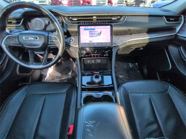 This 2021 Jeep Grand Cherokee L Limited in Diamond Black Crystal Pearlcoat features: 3rd Row Seating, 3rd row seats: split-bench, 4G WiFi Hotspot Telematics, 8" Color Touchscreen, Adaptive Cruise Control, Air Conditioning, Aluminum Wheels, Android Auto, Apple CarPlay, Apple Carplay, Apple CarPlay/Android Auto, Audio memory, Auto Emergency Braking, Automatic temperature control, Backup Camera, Blind Spot Monitoring, Bluetooth, Bluetooth w/ Audio Streaming, Capri Leather Seats, Dual-Pane Panoramic Sunroof, Foward Collison Alert, Front & Rear Park Assist, Front Bucket Seats, Front dual zone A/C, Full Speed Auto Collision Warning Plus, GPS Navigation, Heated Seats, Interior Rear Facing Camera, Lane Departure Warning, Leather Seats, LED Foglights, LED Projector Headlights, Memory Package, Memory seat, Moonroof, Multi Zone Climate Control, Navigation System, Panoramic Sunroof/Moonroof, Parking Sensors, ParkView Rear Back-Up Camera, Power driver seat, Power Liftgate, Power Mirror Package, Power windows, Push Button Start, Quick Order Package 22E, Radio: Uconnect 5 w/8.4" Display, Rear air conditioning, Rear Climate Package, Rear window defroster, Reclining 3rd row seat, Remote keyless entry, Remote Start, Security system, SiriusXM Satellite Radio, Speed control, Sunroof/Moonroof, Third Row Seating, Wheels: 20" x 8.5" Polished/Painted Aluminum.