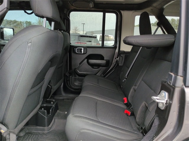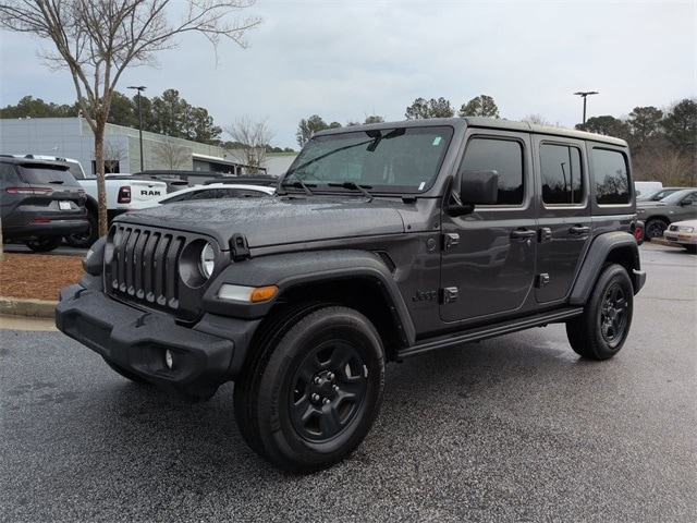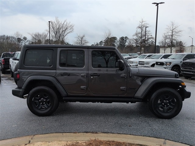 This 2022 Jeep Wrangler Unlimited Sport S in Granite Crystal Metallic Clearcoat features: 4D Sport Utility, 3.6L V6 24V VVT, 8-Speed Automatic, 4WD, **LOCAL TRADE**, 110 MPH Vehicle Max Speed Calibration, 4-Wheel Disc Brakes, 7" Color Touchscreen, 8 Speakers, ABS brakes, Android Auto, Apple Carplay, Apple CarPlay/Android Auto, Automatic Headlamps, Backup Camera, Black 3-Piece Hard Top, Bluetooth w/ Audio Streaming, Brake assist, Compass, Corning Gorilla Glass, Deep Tint Sunscreen Windows, Delay-off headlights, Electronic Stability Control, Emergency communication system: SiriusXM Guardian, Engine Oil Cooler, Freedom Panel Storage Bag, Front 1-Touch Down Power Windows, Front Bucket Seats, Front Center Armrest w/Storage, Front fog lights, Hill Start Assist, Integrated roll-over protection, Leather Wrapped Steering Wheel, Low tire pressure warning, No Soft Top, Off Road Package, Outside temperature display, ParkView Rear Back-Up Camera, Power Heated Mirrors, Power Mirror Package, Power Package, Power steering, Preferred Equipment Package, Push Button Start, Quick Order Package 25S Sport S, Radio data system, Radio: Uconnect 4 w/7" Display, Rear Window Defroster, Rear Window Wiper/Washer, Remote Keyless Entry, Security Alarm, Skid Plate Package, Speed control, Speed Sensitive Power Locks, Split folding rear seat, Sport Package, Sport S, Steering wheel mounted audio controls, Sun Visors w/Illuminated Vanity Mirrors, Telescoping steering wheel, Tilt steering wheel, Traction control, Trip computer, Wheels: 17" x 7.5" Tech Silver Aluminum.