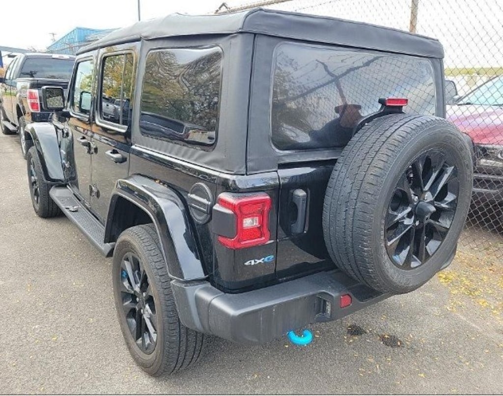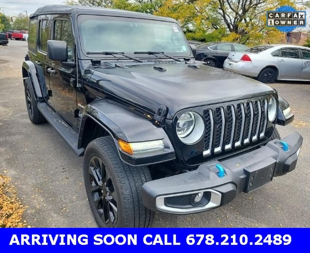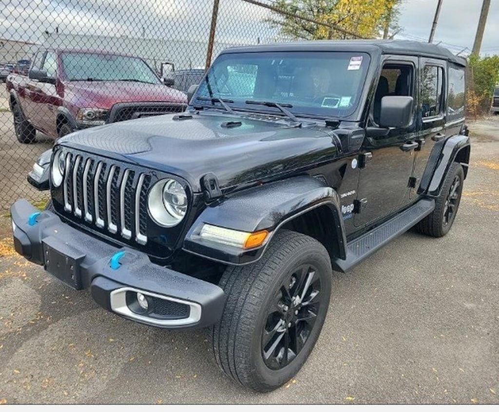 This 2022 Jeep Wrangler Unlimited Sahara 4xe in Black Clearcoat features: 4D Sport Utility, 2.0L I4 DOHC, 8-Speed Automatic, 4WD, 4-Wheel Disc Brakes, 9 Speakers, ABS brakes, Alloy wheels, AM/FM radio, Android Auto, Apple Carplay, Apple CarPlay/Android Auto, Auto LED Headlights, Auto-dimming Rear-View mirror, Automatic temperature control, Backup Camera, Bluetooth w/ Audio Streaming, Brake assist, Compass, Delay-off headlights, Electronic Stability Control, Emergency communication system: SiriusXM Guardian, Front Bucket Seats, Front Center Armrest w/Storage, Front dual zone A/C, Front fog lights, Fully automatic headlights, Garage door transmitter, Heated door mirrors, Hill Start Assist, Illuminated entry, Integrated roll-over protection, Leather Shift Knob, Leather steering wheel, Low tire pressure warning, Navigation System, Outside temperature display, Panic alarm, ParkView Rear Back-Up Camera, Passenger door bin, Power door mirrors, Power steering, Power windows, Preferred Equipment Package, Premium McKinley Trimmed Seats, Quick Order Package 29P, Radio data system, Radio: Uconnect 4C Nav w/8.4" Display, Rear seat center armrest, Remote keyless entry, Security system, Speed control, Split folding rear seat, Sport Suspension, Steering wheel mounted audio controls, Telescoping steering wheel, Tilt steering wheel, Traction control, Trip computer, Variably intermittent wipers, Wheels: 20" x 8" Fully Painted Aluminum.