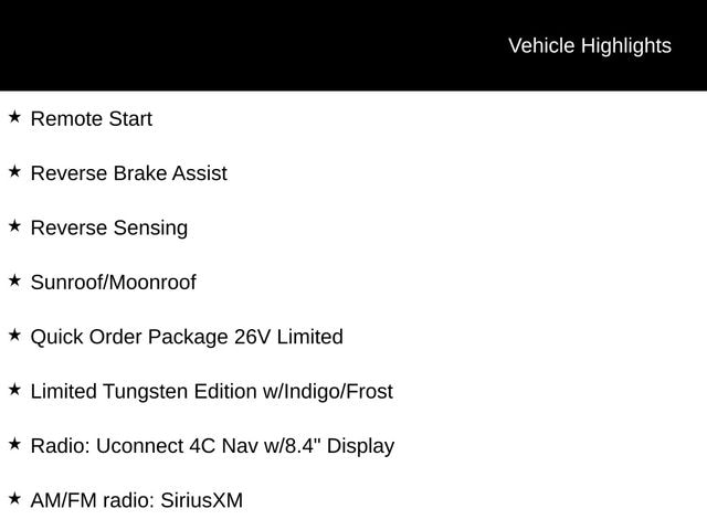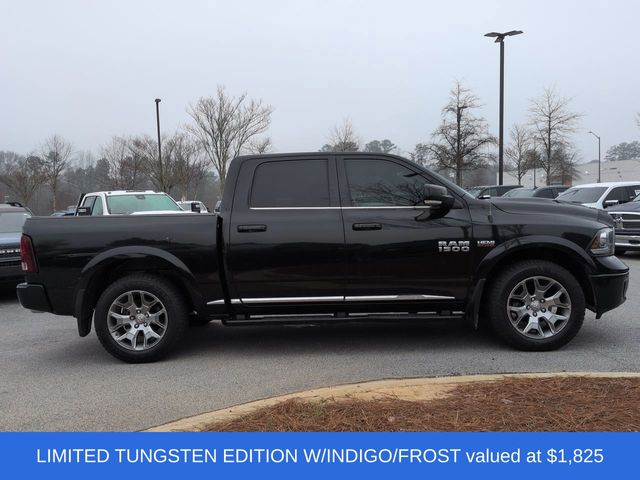 The Limited Tungsten Edition takes this Ram 1500 to the next level, with its distinctive exterior styling, premium interior appointments, and advanced technology. The sleek black exterior, accented by satin chrome and body-colored trim, gives this truck a commanding presence on the road. Step inside and you'll be surrounded by luxurious leather seating, a premium audio system, and a user-friendly infotainment display.