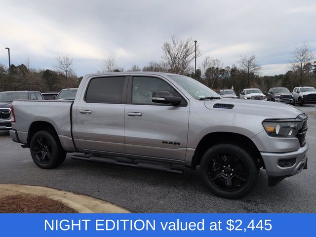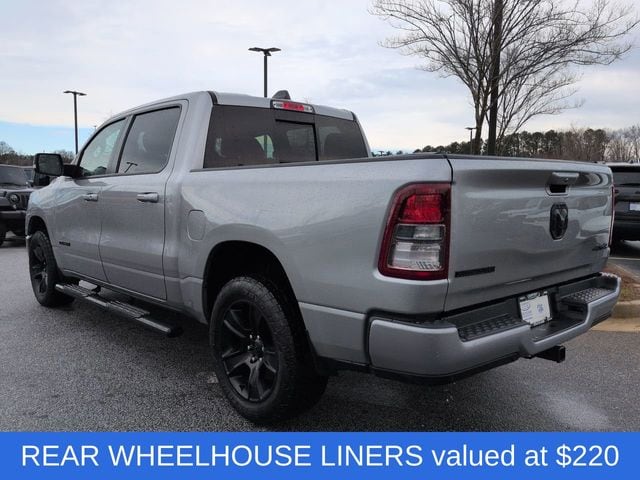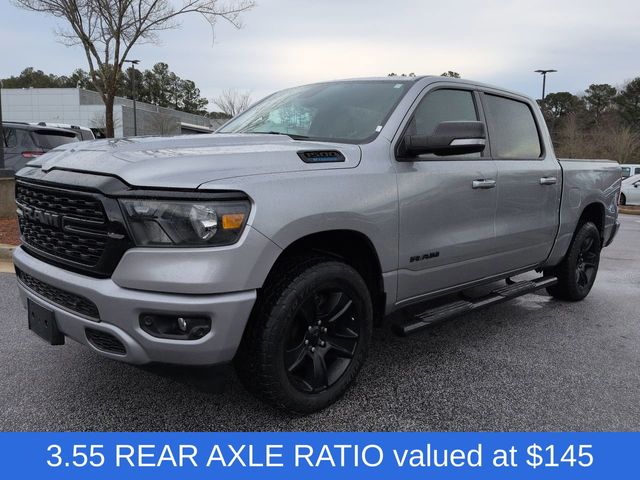 This 2022 Ram 1500 Big Horn/Lone Star in Billet Silver Metallic Clearcoat features: 4D Crew Cab, 3.6L V6 24V VVT, 8-Speed Automatic, 4WD, 115V Auxiliary Power Outlet, 115V Auxiliary Rear Power Outlet, 2nd Row In Floor Storage Bins, 3 Rear Seat Head Restraints, 4 Way Front Headrests, 4-Wheel Disc Brakes, 400W Inverter, 4G LTE Wi-Fi Hot Spot, 4G WiFi Hotspot Telematics, 8.4" Touchscreen Display, 8" Color Touchscreen, ABS brakes, Air Conditioning ATC w/Dual Zone Control, Android Auto, Anti-Spin Differential Rear Axle, Apple CarPlay, Apple Carplay, Auto-Dimming Exterior Driver Mirror, Auto-Dimming Rear-View Mirror, Backup Camera, Big Horn Badge, Big Horn Level B Equipment Group (DISC), Black Exterior Mirrors, Black Exterior Truck Badging, Black Headlamp Bezels, Black Interior Accents, Black Premium Power Mirrors (GUL), Bluetooth Handsfree Phone & Audio, Bluetooth w/ Audio Streaming, Body Color Front Bumper, Body Color Rear Bumper w/Step Pads, Brake assist, Bucket Seats, Class IV Receiver Hitch, Cluster 7.0" TFT Color Display, Cold Weather Package, Compass, Connectivity - US/Canada, Convex Wide-Angle Mirror Insert, Delay-off headlights, Delete LED Lamp - Floor Console Bin, Deluxe Cloth Bucket Seats, Dual Exhaust w/Black Tips, Electronic Stability Control, Emergency communication system: SiriusXM Guardian, Exterior Mirrors Courtesy Lamps, Exterior Mirrors w/Supplemental Signals, Foam Bottle Insert (Door Trim Panel), For More Info, Call 800-643-2112, Front & Rear Park Assist, Front fog lights, Front Seat Back Map Pockets, Front wheel independent suspension, Full Length Floor Console, Fully automatic headlights, Global Telematics Box Module (TBM), Glove Box Lamp, Google Android Auto, GPS Antenna Input, Heated Front Seats, Heated Steering Wheel, Heavy-Duty Engine Cooling, Hill Start Assist, Illuminated entry, Integrated Center Stack Radio, Integrated Voice Command w/Bluetooth, Leather steering wheel, Low tire pressure warning, Manual Adjust 4-Way Front Passenger Seat, Media Hub w/2 Charge Only USBs, Night Edition (DISC), Outside temperature display, Overhead console, Panic alarm, Parking Sensors, ParkSense Front/Rear Park Assist w/Stop, ParkView Rear Back-Up Camera, Power 2-Way Driver Lumbar Adjust, Power 8-Way Driver Seat, Power Adjustable Pedals, Power door mirrors, Power Mirror Package, Power Package, Push Button Start, Quick Order Package 23Z Big Horn, Radio data system, Radio: Uconnect 5 W w/8.4" Display, Rear 60/40 Folding Seat, Rear Center Armrest, Rear Dome w/On/Off Switch Lamp, Rear Power Sliding Window, Rear seat center armrest, Rear step bumper, Rear Underseat Compartment Storage, Rear Window Defroster, Remote keyless entry, Remote Start, Remote Start System, Reverse Brake Assist, Reverse Sensing, Security Alarm, SiriusXM Radio Service, SiriusXM Satellite Radio, Speed control, Steering wheel mounted audio controls, Sun Visors w/Illuminated Vanity Mirrors, Telescoping steering wheel, Tilt steering wheel, Trip computer, Universal Garage Door Opener, USB Host Flip, Variably intermittent wipers, Wheels: 20" x 9.0" Premium Paint/Polished (DISC).