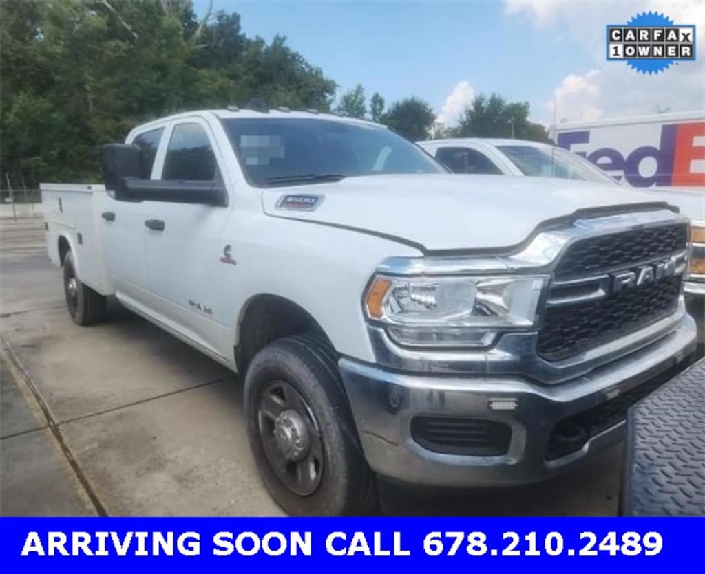 This 2022 Ram 3500 Tradesman in Bright White Clearcoat features: 4D Crew Cab, Cummins 6.7L I6 Turbodiesel, 6-Speed Automatic, 4WD, 2 Way Rear Headrest Seat, 4 Way Front Headrests, 4-Wheel Disc Brakes, 40/20/40 Split Bench Seat, 4G LTE Wi-Fi Hot Spot, 4G WiFi Hotspot Telematics, 50 Gallon Fuel Tank, 6 Speakers, 8.4" Touchscreen Display, ABS brakes, Active Noise Control System, All R1 Low Radios, All Radio Equipped Vehicles, Android Auto, Apple CarPlay, Apple Carplay, Backup Camera, Bluetooth Handsfree Phone & Audio, Bluetooth w/ Audio Streaming, Brake assist, Bright Front Bumper, Bright Rear Bumper, Bright Wheel Skins, Carpet Floor Covering, Center Hub, Chrome Appearance Group, Chrome Grille Surround, Cloth 40/20/40 Bench Seat, Cluster 3.5" TFT Color Display, Cluster 7.0" TFT Color Display, Connectivity - US/Canada, Delay-off headlights, Electronic Stability Control, Electronically Controlled Throttle, Emergency communication system: SiriusXM Guardian, For Details Visit DriveUconnect.com, Front Armrest w/Cupholders, Front Center Armrest w/Storage, Fully automatic headlights, Global Telematics Box Module (TBM), Google Android Auto, GPS Antenna Input, Heated door mirrors, Hill Start Assist, Illuminated entry, Integrated Center Stack Radio, Integrated Voice Command w/Bluetooth, Low tire pressure warning, Manual Adjust 4-Way Driver Seat, Manual Adjust 4-Way Front Passenger Seat, Matte Black Mesh w/Chrome Grille, MOPAR Spray In Bedliner, Outside temperature display, Overhead console, ParkView Rear Back-Up Camera, Power door mirrors, Power steering, Power windows, Preferred Equipment Package, Push Button Start, Quick Order Package 2HA Tradesman, Radio data system, Radio: Uconnect 5 w/8.4" Display, Rear Folding Seat, Rear Power Sliding Window, Rear step bumper, Rear Window Defroster, Selectable Tire Fill Alert, SiriusXM Satellite Radio, Speed control, Storage Tray, Tilt steering wheel, Tow Package, Traction control, Tradesman Level 2 Equipment Group, Trailer Brake Control, Trailer Light Check, Trailer Package, Turn signal indicator mirrors, Variably intermittent wipers, Wheels: 18" x 8.0" Steel Chrome Clad.