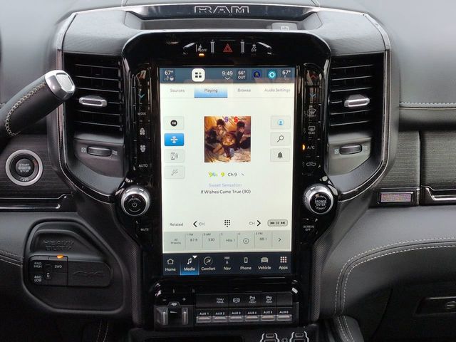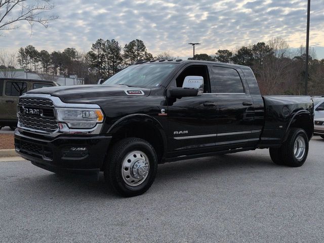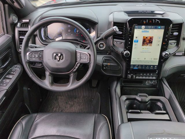 This 2024 Ram 3500 Limited in Diamond Black Crystal Pearlcoat features: 4D Mega Cab, 6.7L I6, Aisin 6-Speed Automatic, 4WD, **LOCAL TRADE**, 12" LCD Productivity Touchscreen, 12" Touchscreen Display, 17 Speaker harman/kardon Premium Sound, 220 Amp Alternator, 4 Adjustable Cargo Tie-Down Hooks, 4-Wheel Disc Brakes, 4G LTE Wi-Fi Hot Spot, 6000# Front Axle w/Hub Ext, ABS brakes, Adaptive Cruise Control w/Stop, Adaptive Steering, Adaptive Steering System, Adjustable pedals, Alexa Built-In, Android Auto, Apple CarPlay, Apple Carplay, Apple CarPlay/Android Auto, Audio memory, Auto High-beam Headlights, Auto-dimming door mirrors, Auto-dimming Rear-View mirror, Automatic temperature control, Backup Camera, Blind Spot Monitoring, Bluetooth w/ Audio Streaming, Box & Rear Fender Clearance Lamps, Brake assist, Center Stop Lamp w/Cargo View Camera, Clearance Lamps, Cold Weather Package, Compass, Connected Travel & Traffic Services, Connectivity - US/Canada, Dash Pass Thru Wire Circuits, Delay-off headlights, Digital Rearview Mirror, Disassociated Touchscreen Display, Dual Rear Wheel Fender Flare Tracking, Dual Rear Wheels, Electronic Stability Control, Engine Block Heater, Front & Rear Park Assist, Front Center Armrest w/Storage, Front dual zone A/C, Front fog lights, Full Speed Forward Collision Warning Plus, Fully automatic headlights, Garage door transmitter, Genuine wood console insert, Genuine wood dashboard insert, Genuine wood door panel insert, Global Telematics Box Module (TBM), Google Android Auto, GPS Antenna Input, GPS Navigation, HD Radio, HD Surround Vision, Heated door mirrors, Heated front seats, Heated rear seats, Heated steering wheel, I/P Mounted Auxiliary Switches, Illuminated entry, Instrument Cluster Theme 8, Integrated Voice Command w/Bluetooth, Lane Keep Assist, Lane Keeping System, Leather Seats, Leather steering wheel, LED Bed Lighting, Limited Leather Bucket Seats, Limited Level 1 Equipment Group, Limited Package, Low tire pressure warning, Luxury Door Trim Panel, Memory Package, Memory seat, MOPAR Deployable Bed Step, MOPAR Spray In Bedliner, Multimedia Package, Navigation System, Off-Road Information Pages, Outside temperature display, Overhead console, Panic alarm, Parking Sensors, ParkView Rear Back-Up Camera, Pedal memory, Power Deployable Running Boards, Power door mirrors, Power Mirror Package, Power Package, Power passenger seat, Power Running Boards, Power Sunroof, Preferred Equipment Package, Premium Audio Package, Premium Sound Package, Protection Group, Push Button Start, Quick Order Package 21M Limited, Radio data system, Radio: Uconnect 5 Nav w/12.0" Display, Rain sensing wipers, RamBox Cargo Management System, Ramcharger Wireless Charging Pad, Rear Cross Traffic Alert, Rear seat center armrest, Rear step bumper, Rear window defroster, Remote keyless entry, Remote Start, Reverse Brake Assist, Reverse Sensing, Safety Package, Security system, Selectable Tire Fill Alert, SiriusXM Radio Service, SiriusXM w/360L, Split folding rear seat, Steering wheel mounted audio controls, Sunroof/Moonroof, Surround View Camera System, Tilt steering wheel, Tip Start, Traction control, Trailer Reverse Guidance, Trailer Tow Pages, Trip computer, Truck Bed Cargo Divider, Turn signal indicator mirrors, Vendor Painted Cargo Box, Vendor Painted Cargo Box Tracking, Ventilated front seats, Wheels: 20" x 8.0" Satin Carbon w/Chrome Insert, Wireless Charging Pad.
